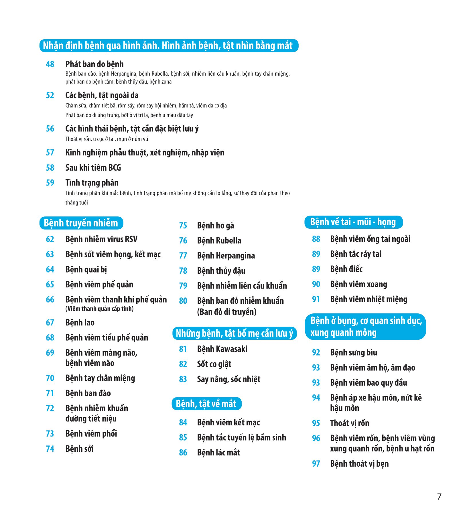 Thông tin chi tiết về các bệnh thường gặp: Cuốn sách cung cấp những thông tin khoa học, dễ hiểu về 70 loại bệnh thường gặp ở trẻ sơ sinh và trẻ nhỏ, từ những bệnh đơn giản như cảm cúm đến những bệnh phức tạp hơn.