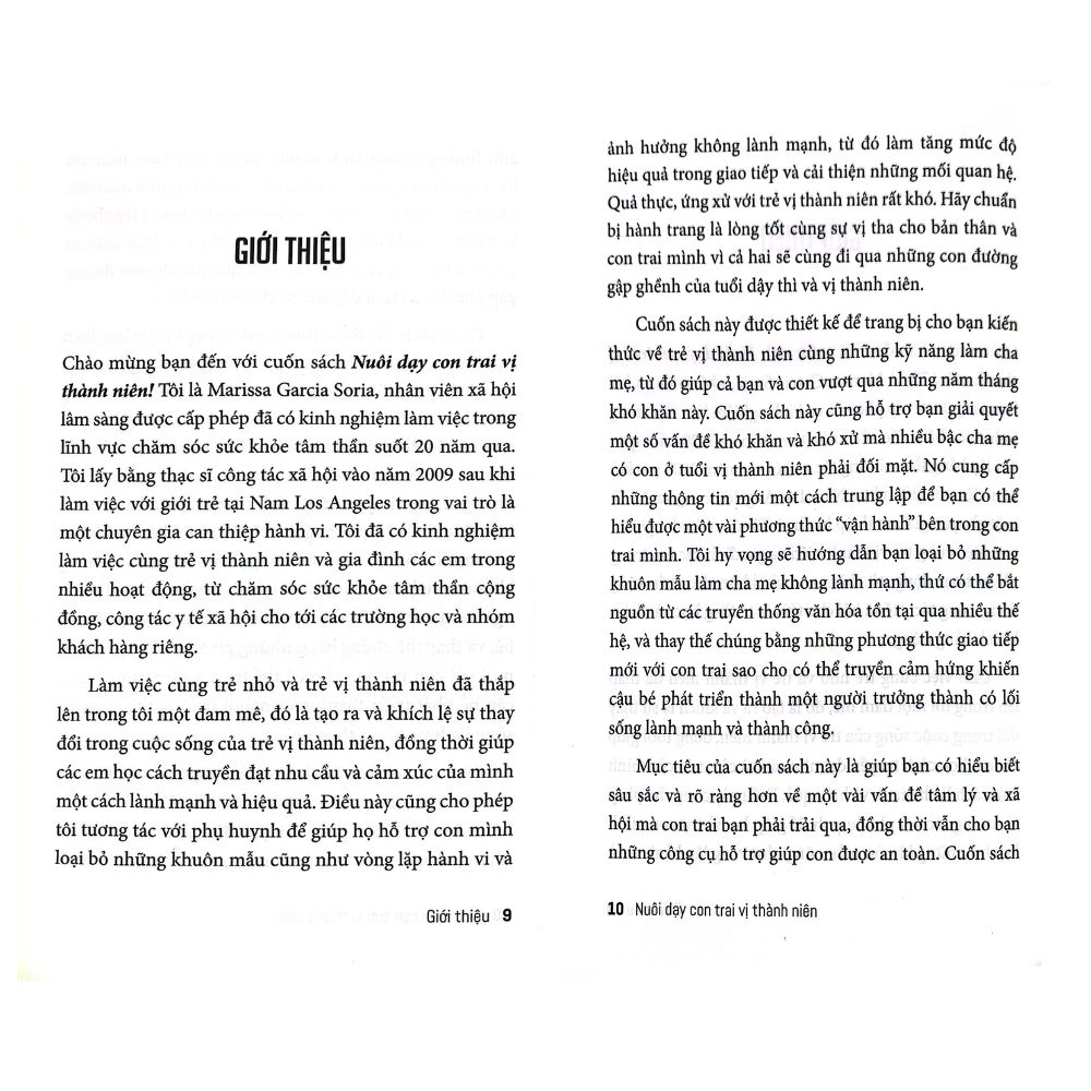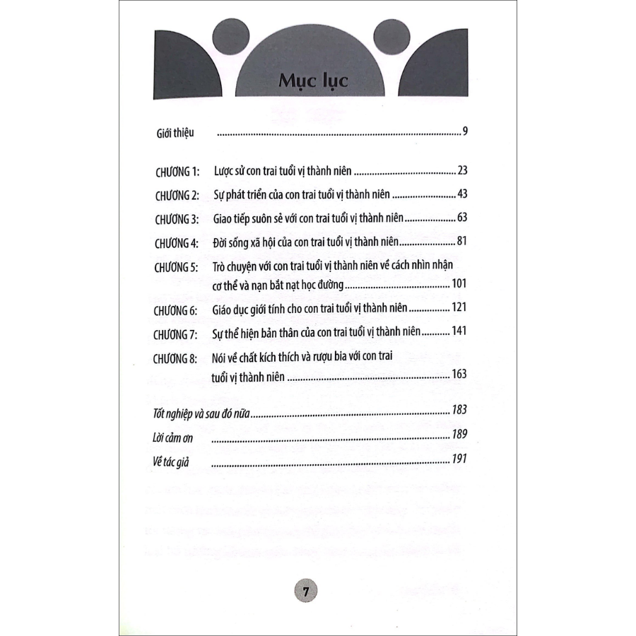 Giới thiệu Cuốn sách này được thiết kế để trang bị cho bạn kiến thức về trẻ vị thành niên cùng những kỹ năng làm cha mẹ, từ đó giúp cả cha mẹ và con vượt qua những năm tháng khó khăn này. Cuốn sách cũng hỗ trợ cha mẹ giải quyết một số vấn đề khó khăn và khó xử mà nhiều bậc cha mẹ có con ở tuổi vị thành niên phải đối mặt. Nó cung cấp những thông tin mới một cách trung lập để phụ huynh có thể hiểu được một vài phương thức “vận hành” bên trong con trai mình.