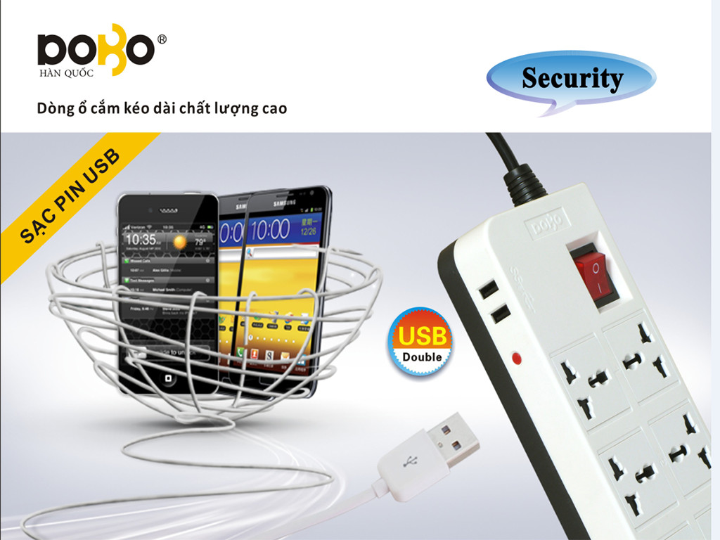 ✨Ổ Cắm Dài 3 Lỗ Kèm Cổng USB Dobo Electric Korea (16A - 3m) - Trắng