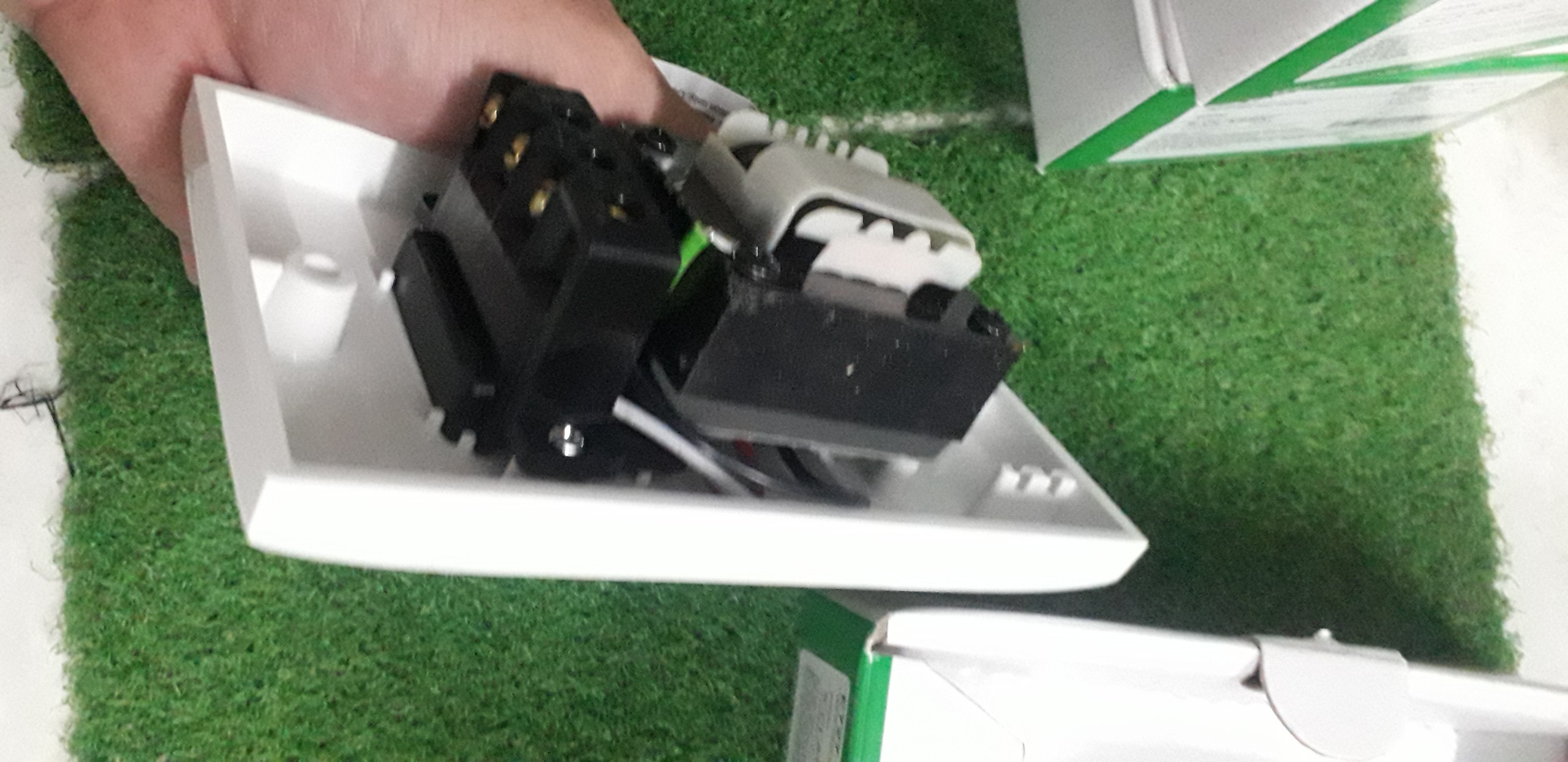 - Nhiệt độ bảo quản: °C Đặc điểm môi trường sử dụng : indoor; No UV resistant Tiêu chuẩn : IEC 61558-1 Kích thước Chiều rộng : 87mm; Chiều cao : 147 mm Sử dụng đế âm E257DBE_C5 hoặc A3B050_G19 (Kích thước (mm): 75x75x47)