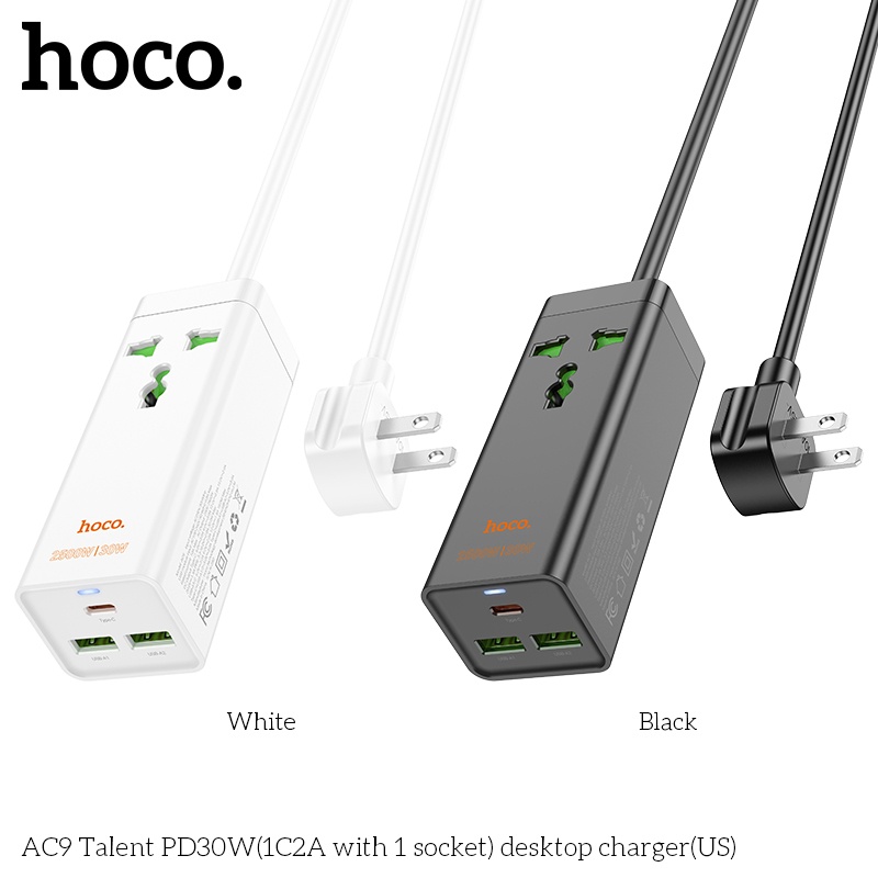 ✨Ổ cắm điện đa năng sạc nhanh PD 30W cổng typeC + QC18W có 2*USB và 1*Type-C có 1 lỗ cắm tải 2500W dây dài 1.5m AC9 - Hàng chính hãng