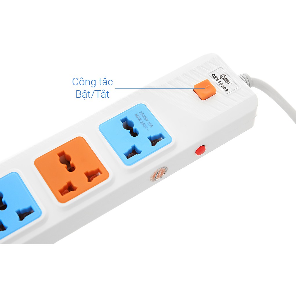 Ổ cắm Comet làm bằng chất liệu nhựa ABS chịu nhiệt cao, an toàn chịu nhiệt tốt, bền đẹp Dây điện dài 2m thuận tiện cho nhu cầu sử dụng gần, xa và di chuyển dễ dàng nhờ trọng lượng nhẹ chỉ 200g
