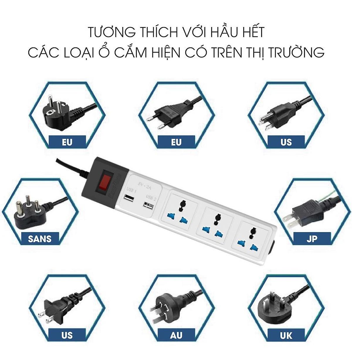 - Dễ dàng sử dụng với ổ cắm tương thích hầu hết với các loại phích cắm trên thị trường. THÔNG TIN CHI TIẾT: