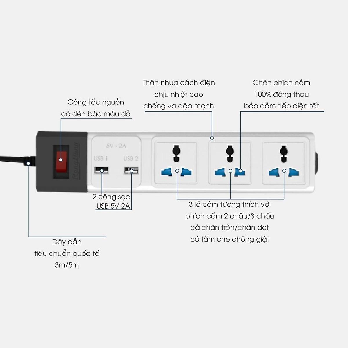 Mua tại TiktokViệc sử dụng các thiết bị truyền tải và phân phối điện không đảm bảo chất lượng có thể gây thiệt hại về tài sản hay thậm chí tính mạng con người, trong đó không thể không kể đến các loại ổ cắm kéo dài. Ổ cắm kéo dài là sản phẩm được rất nhiều người quan tâm sử dụng hiện nay. Bởi đây là thiết bị điện đem lại nhiều tiện lợi cho người dùng và ứng dụng rộng rãi không chỉ trong mỗi gia đình mà còn ở văn phòng công sở, trường học, bệnh viện… Mẫu Ổ cắm điện Rạng Đông tích hợp 2 cổng cắm USB mà chúng tôi giới thiệu sau đây sẽ làm một lựa chọn rất đáng cân nhắc. ĐẶC ĐIỂM NỔI BẬT: