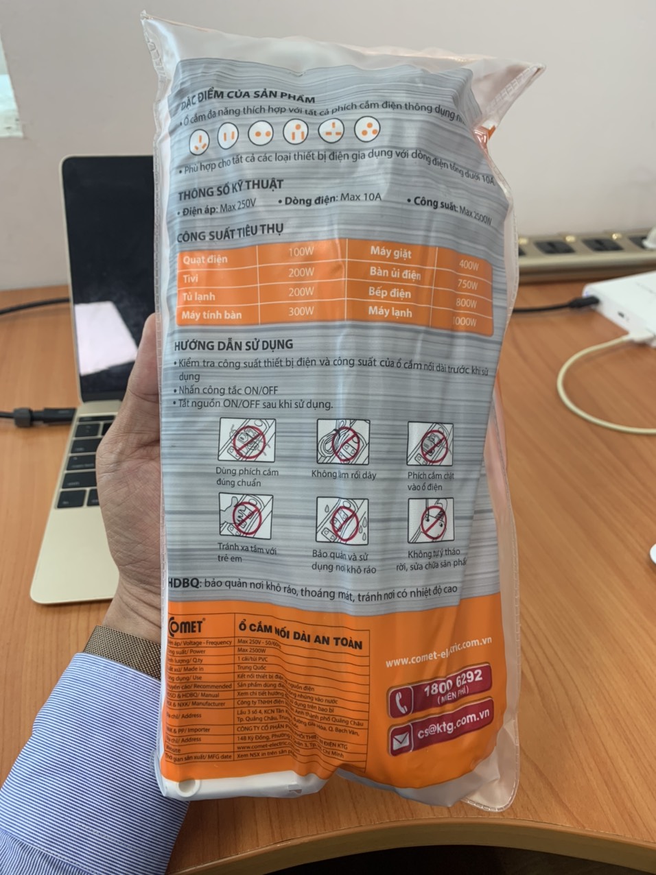 Ổ Cắm Điện Nối Dài Comet, Có Nắp Che Lỗ Cắm An Toàn