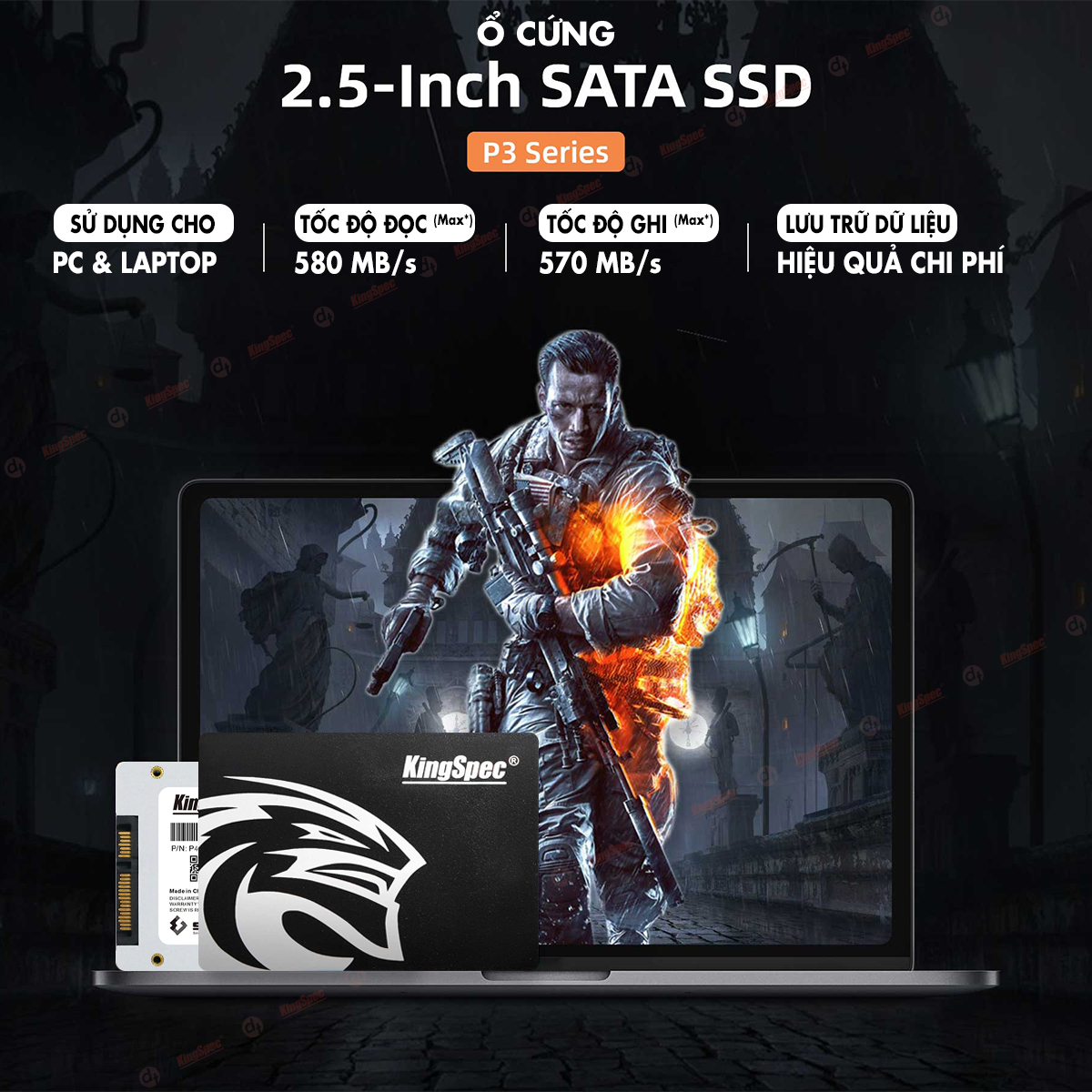 SSD KingSpec mã sản phẩm P3-256, có kích thước 2.5" và chuẩn kết nối SATA3 lắp đặt sử dụng được 100% cho cả Desktop-PC và Laptop có trên thị trường hiện nay, chuẩn kết nối Sata, tốc độ đọc / ghi lần lượt là: Read Speed 580Mb/s, Write Speed 570Mb/s.