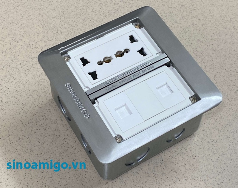 Hộp điện âm sàn nắp trượt Sinoamigo SFP-2L màu bạc chính hãng