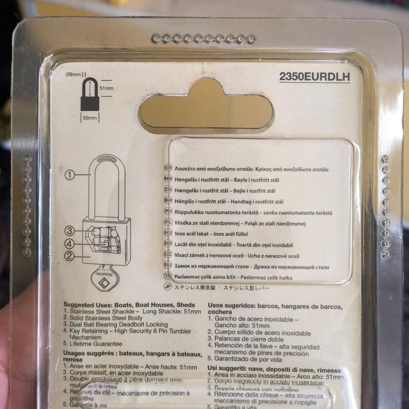 KHÓA MASTER LOCK INOX CHỐNG ĂN MÒN 2350DLH - Cơ chế chốt càng khóa bằng hệ thống bi kép inox chống búa đập, nạy càng khóa. - Càng khóa dài phù hợp với