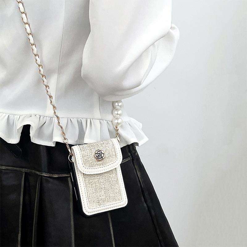 Ốp Lưng dành cho Samsung Galaxy Z Flip 6 / Z Flip 5 dạng ví, kèm phụ kiện xinh xắn - chất liệu : vải bố , khung nhựa cứng - kèm dây đeo ngọc