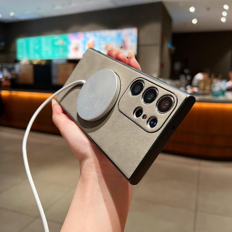 Ốp lưng da có vòng magsafe hỗ trợ sạc không dây tiện lợi cho máy Samsung Galaxy S24 Ultra / S23 Ultra / S22 Ultra / S22 Plus