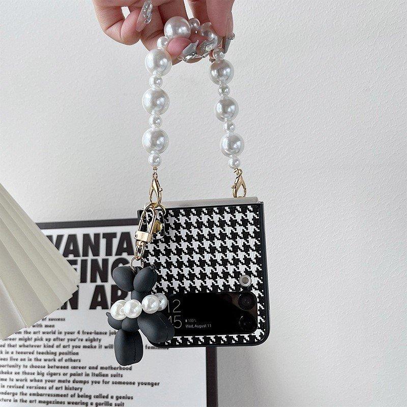 ✨Ốp Lưng Houndstooth Cho Samsung Galaxy Z Flip 6 / Z Flip 5 / Z Flip 4 / Z Flip 3 Kèm Dây Ngọc Trai Cầm Tay