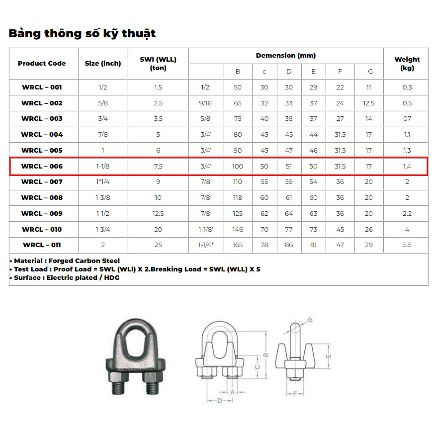 Ốc xiết cáp mạ kẽm phù hợp với các loại cáp thép đòi hỏi lực chịu tải không cao, chuyên sử dụng trong các công trình xây dựng: neo, giằng, kéo giàn giáo, bê tông, cốt thép hay neo giữ trụ ăng ten, trụ điện….
