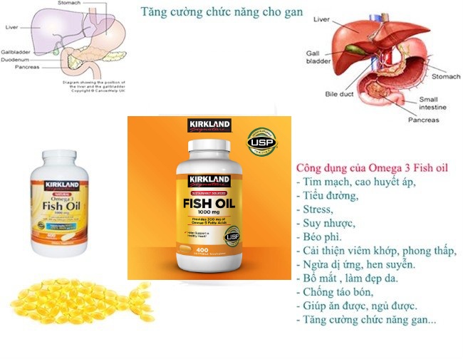 - Dầu cá Omega 3 Mỹ Kirkland Signature Fish Oil 1000mg sử dụng cá từ những vùng biển sâu dưới đại dương, không có th.ủy ngân, PCBs, dioxin và đảm bảo nguyên chất. Nó là một nguồn tự nhiên của các axit béo Omega-3 biển Axit Eicosapentaenoic (EPA) và Axit Docosahexaenoic (DHA), được phân loại là các axit béo thiết yếu. Công thức đặc biệt để phòng ngừa và cải thiện các bệnh lý tuổi trung niên về tim mạch, cao huyết áp, tiểu đường, stress, suy nhược, béo phì và tăng cường chức năng gan, mắt và thần kinh.
