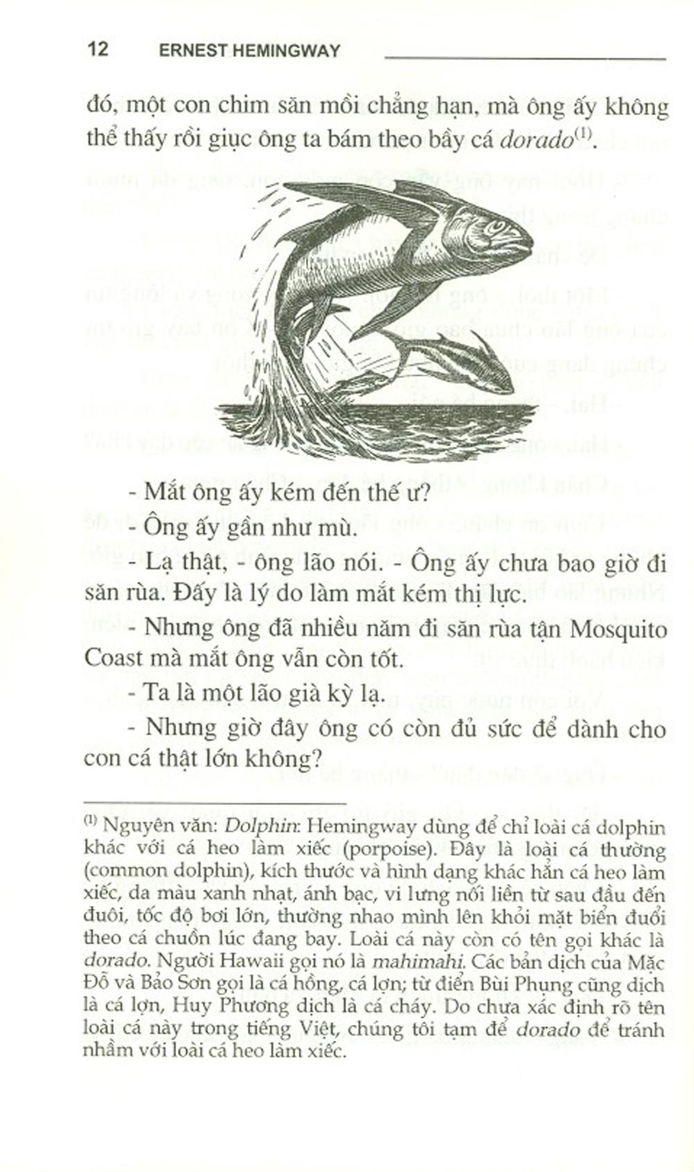 Thiên tiểu thuyết tuyệt vời này kể về cuộc vật lộn đầy kịch tính của lão ngư Santiago với con cá kiếm khổng lồ ngoài biển khơi. Những trang sách đầy cảm động, ngợi ca vẻ đẹp sức mạnh, trí tuệ và lòng khao khát chinh phục của con người trước thiên nhiên .