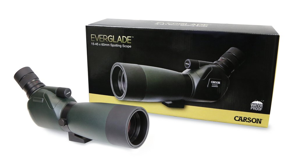 Ống nhòm chống thấm nước Carson SS-560 Everglade HD (Hàng chính hãng Carson Mỹ) với chân máy để bàn, màu xanh lá cây là một ống kính soi 15x-45x với đường kính vật kính 60mm. Có lăng kính lấy nét BK-7 và lăng kính góc BAK-4. Nó được tráng phủ hoàn toàn để có hình ảnh sáng, rõ ràng. SS-560 Everglade không thấm nước và chống sương mù đảm bảo sử dụng trong mọi điều kiện (ni-tơ thanh lọc / vòng kín). Đi kèm với giá ba chân để bàn và túi bảo vệ. Nắp bảo vệ trên thị kính, vặn cốc mắt. Mở rộng bóng nắng để giảm bớt ánh sáng chói bên ngoài.