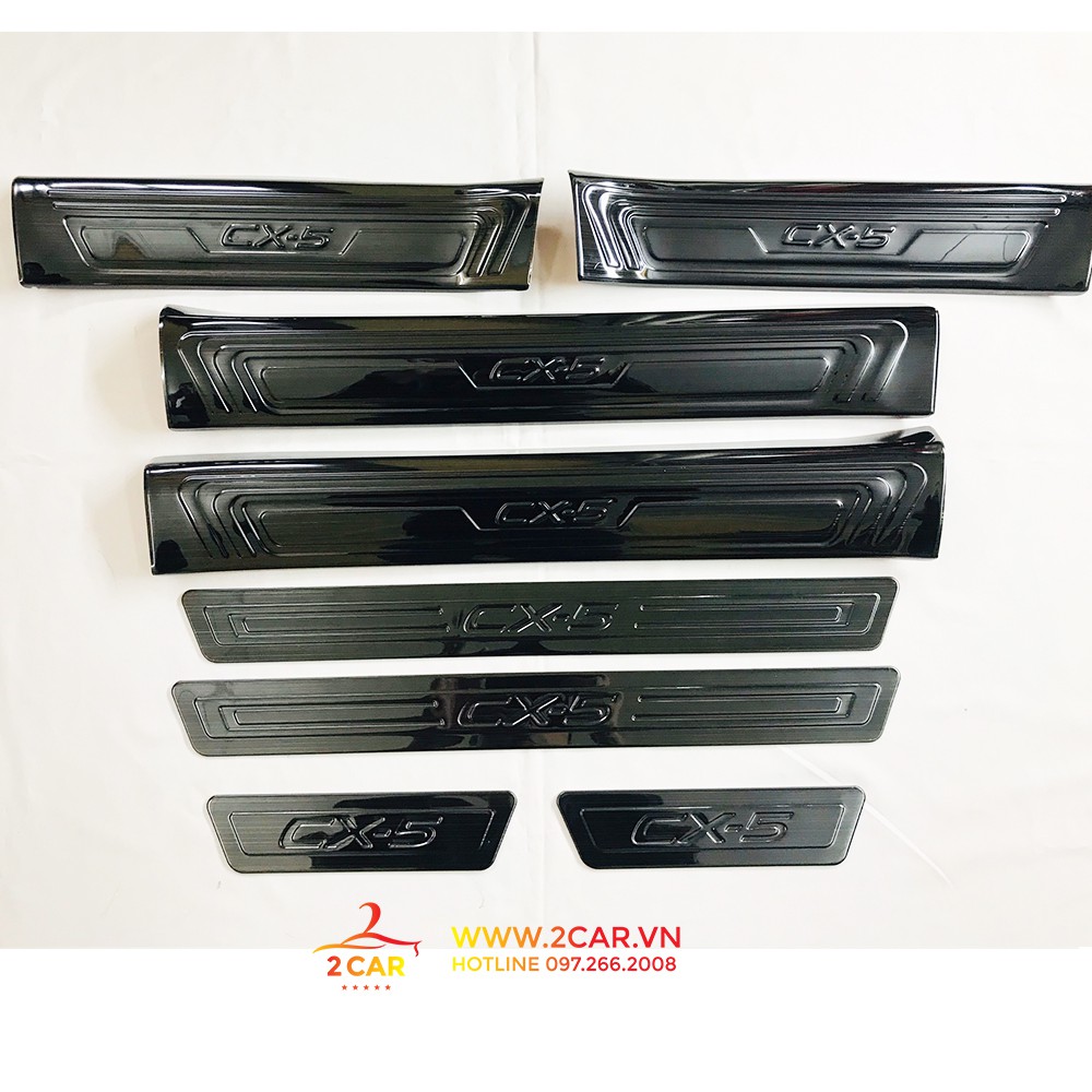 Bộ Ốp Bậc Cửa Trong Ngoài Xe Mazda Cx5 2018-2022, chất liệu Titan có tác dụng che chắn và bảo vệ cho bậc chân lên xuống hạn chế những trầy xước hoặc hư hỏng cho