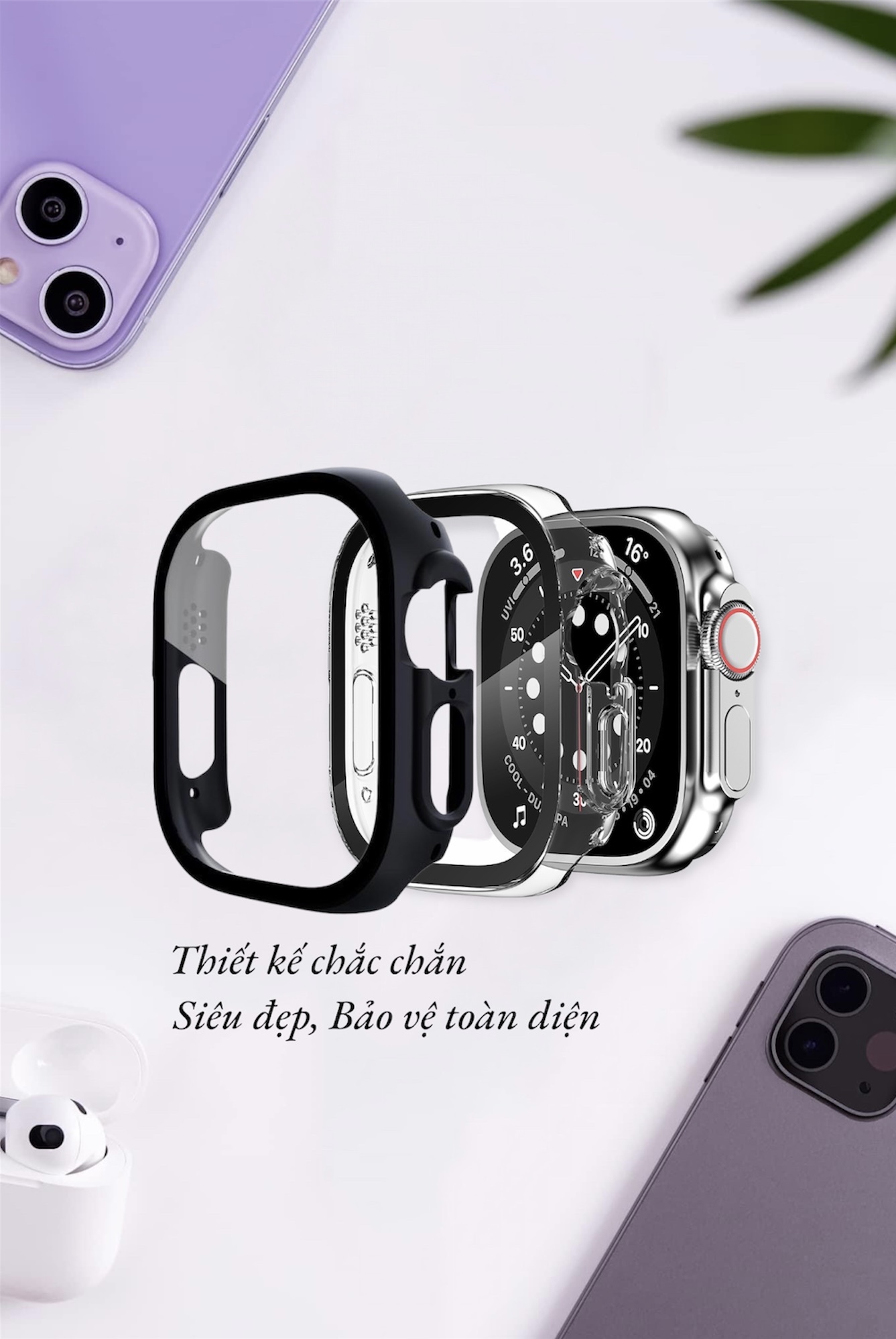 Màu sắc: Đen / Bạc Được làm từ PC mạ điện Tương thích với Apple Watch Ultra/ Ultra 2 Nó có thể bảo vệ hoàn toàn đồng hồ của bạn khỏi trầy xước, rơi, vết