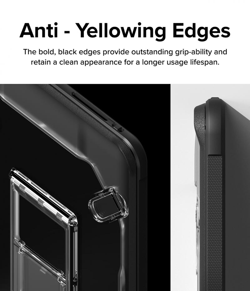 - Thiết kế mặt lưng ốp trong suốt thể hiện được vẻ đẹp của thiết vị, cạnh viền màu đen không lo ngại bị ngả vàng sau một thời gian sử dụng và giúp bạn cầm nắm chắc chắn hơn.