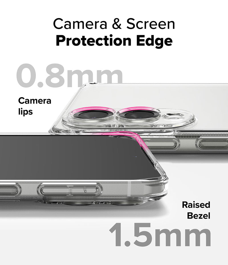 • Thiết kế cạnh viền camera nhô cao 0.8mm và thiết kế cạnh viền màn hình nhô cao 1.5mm giúp chống trầy.