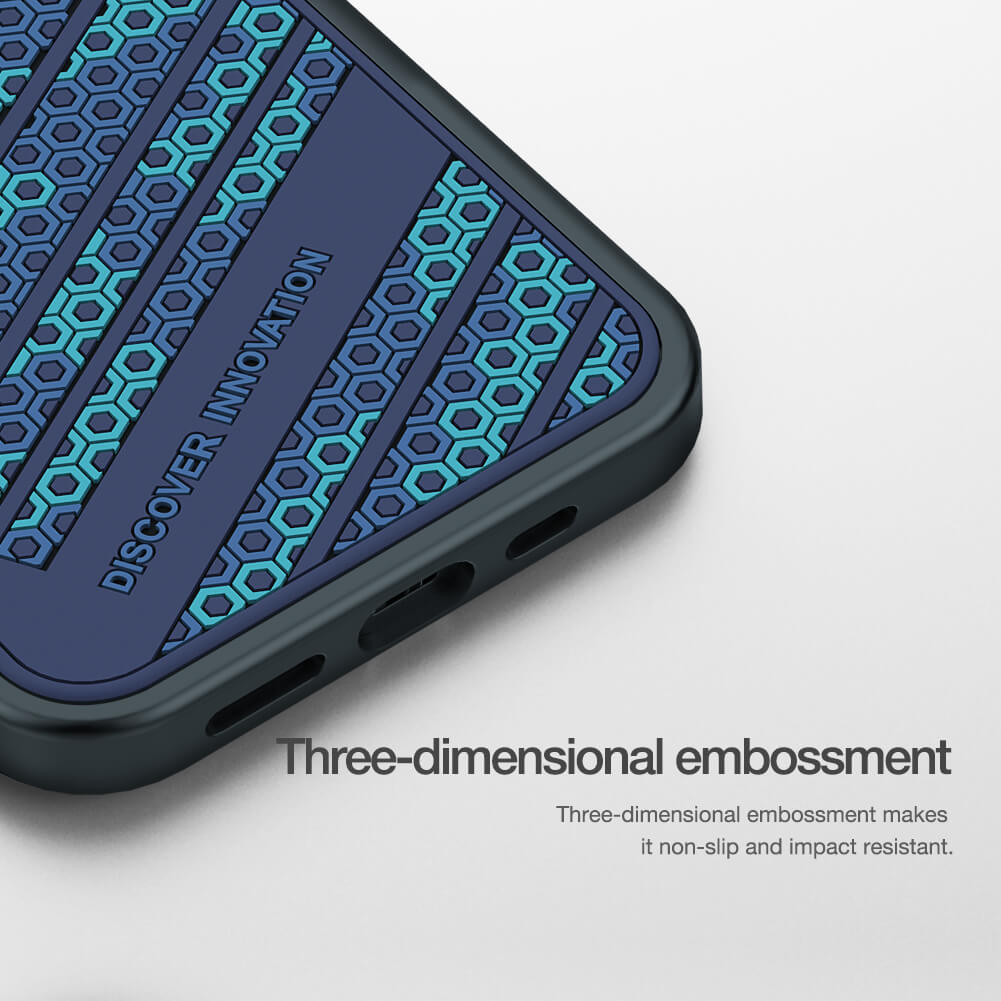 Ốp lưng chống sốc cho iPhone 13 Pro họa tiết mặt lưng 3D hiệu Nillkin Striker thiết kế với phần lưng dưới có dạng tổ ong giúp tản nhiệt tốt hơn, qua đó tăng tuổi thọ máy cũng như giảm tải các nguy cơ rủi ro do quá nhiệt.