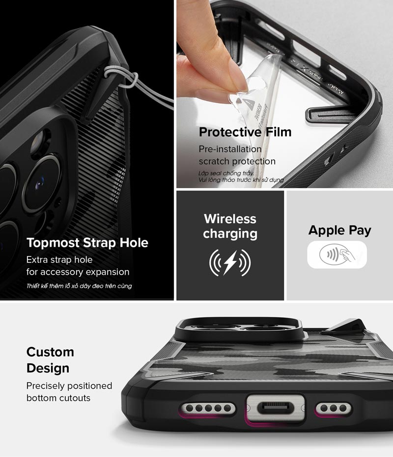 • Tương thích với dán bảo vệ camera Ringke Lens Frame Glass hoặc dán cường lực Full Cover Glass, bạn có thể mua thêm dán camera để bảo vệ tối ưu cho thiết bị.