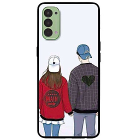 Ốp lưng dành cho Oppo Reno 4 mẫu Cặp Đôi Mũ Trắng Xanh
