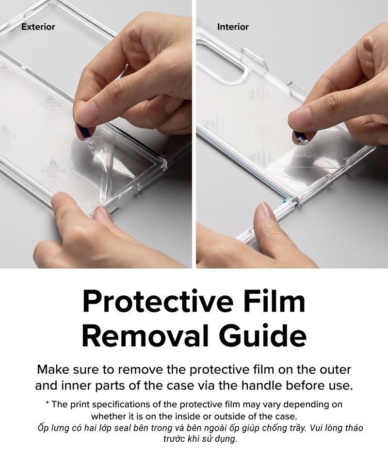 • Ốp lưng có 2 lớp seal bên trong và bên ngoài ốp giúp chống trầy. Vui lòng tháo lớp seal này trước khi sử dụng.