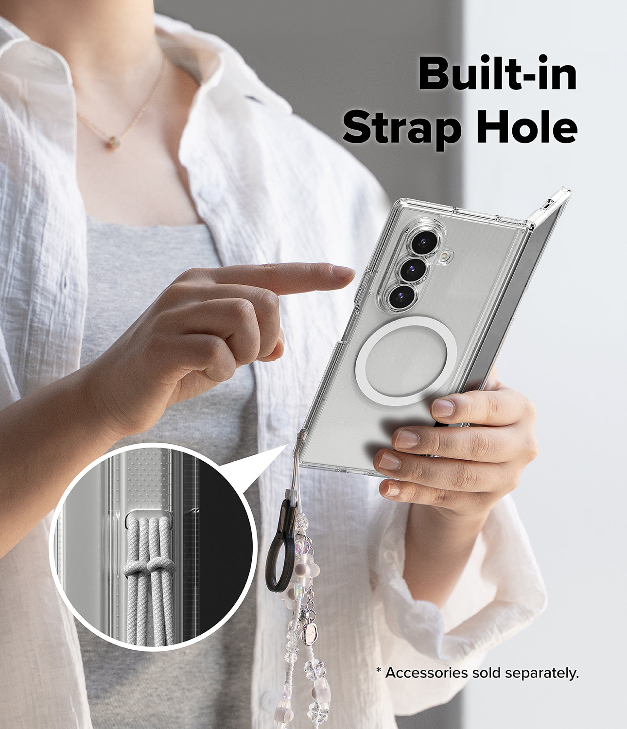 Kích thước lỗ xỏ dây đeo cải tiến cho phép treo (móc) được 2 phụ kiện cùng lúc. Lưu ý: dây đeo được bán riêng. Hình ảnh chỉ minh họa cách sử dụng sản phẩm.