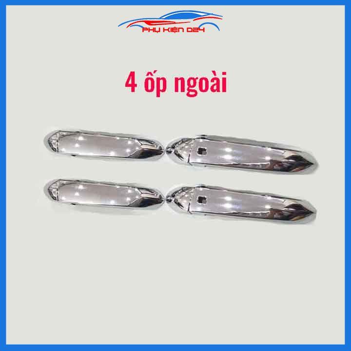Bộ sản phẩm gồm 8 chi tiết cho 4 tay nắm cửa và 4 hõm cửa xe (Quý khách có thể lựa chọn mua riêng ốp tay nắm cửa, ốp hõm cửa hoặc cả bộ