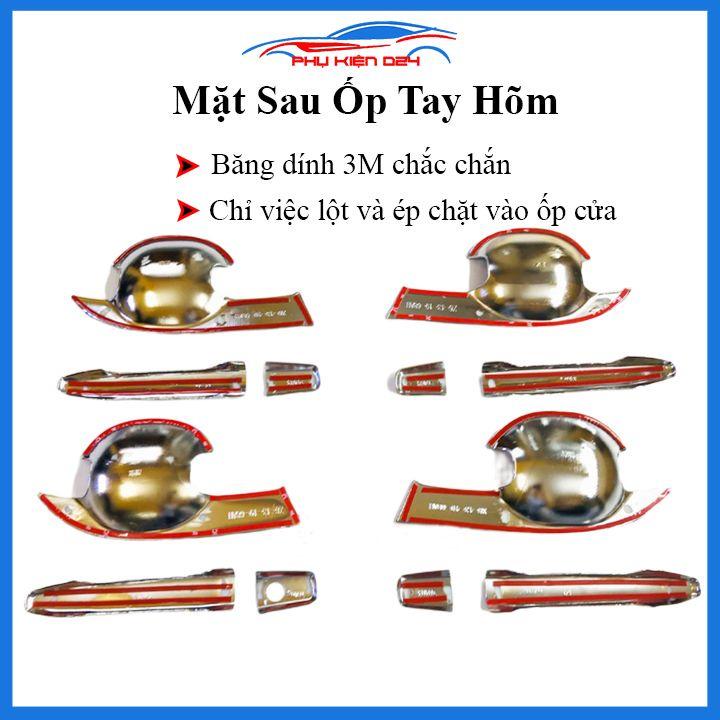 Bộ sản phẩm gồm 8 chi tiết cho 4 tay nắm cửa và 4 hõm cửa xe (Quý khách có thể lựa chọn mua riêng ốp tay nắm cửa, ốp hõm cửa hoặc cả bộ