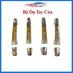 Bộ sản phẩm gồm các chi tiết ốp cho 4 tay nắm cửa và 4 hõm cửa xe (Quý khách có thể lựa chọn mua riêng ốp tay nắm cửa, ốp hõm cửa hoặc cả