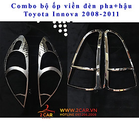 Ốp viền đèn pha, hậu xe Toyota Innova 2009-2011 mạ crom cao cấp, sáng bóng
