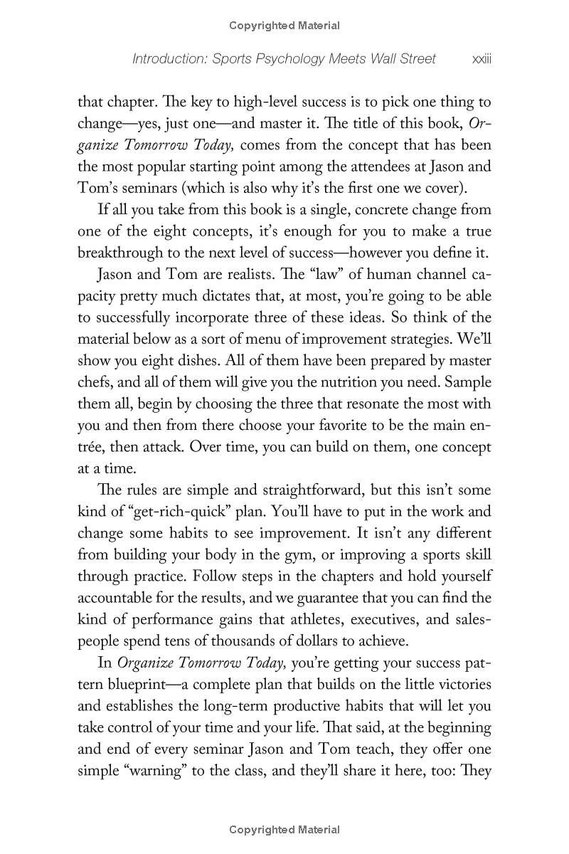 In Organize Tomorrow Today (OTT), two of the top minds in human performance come together to r the pathway to extreme success: Doing more is not the answer, and Selk and Bartow walk you through how to achieve more by doing less.