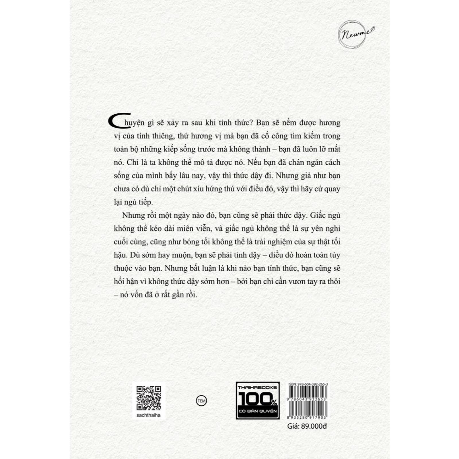 Chuyện gì sẽ xảy ra sau khi tỉnh thức? Bạn sẽ nếm được hương vị của tính thiêng, thứ hương vị mà bạn đã cố công tìm kiếm trong toàn bộ những kiếp sống trước mà không thành ‒ bạn đã luôn lỡ mất nó. Chỉ là ta không thể mô tả được nó. Nếu bạn đã chán ngán cách sống của mình bấy lâu nay, vậy thì thức dậy đi. Nhưng giả như bạn chưa có dù chỉ một chút xíu hứng thú với điều đó, vậy thì hãy cứ quay lại ngủ tiếp.