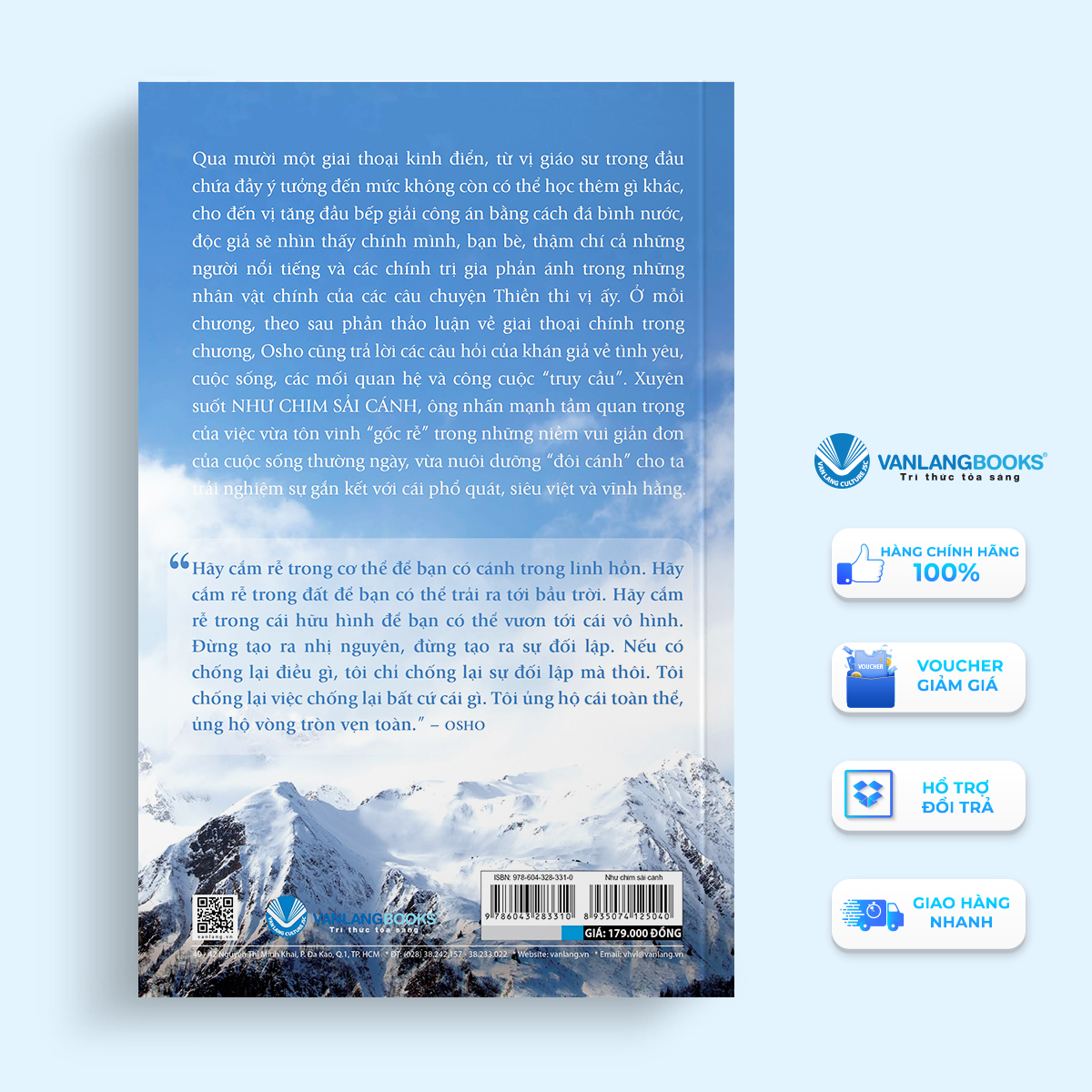 Qua mười một giai thoại kinh điển, từ vị giáo sư trong đầu chứa đầy ý tưởng đến mức không còn có thể học thêm gì khác, cho đến vị tăng đầu bếp giải công án bằng cách đá bình nước, độc giả sẽ nhìn thấy chính mình, bạn bè, thậm chí cả những người nổi tiếng và các chính trị gia phản ánh trong những nhân vật chính của các câu chuyện Thiền thi vị ấy. Ở mỗi chương, theo sau phần thảo luận về giai thoại chính trong chương, Osho cũng trả lời các câu hỏi của khán giả về tình yêu, cuộc sống, các mối quan hệ và công cuộc “truy cầu”. Xuyên suốt NHƯ CHIM SẢI CÁNH, ông nhấn mạnh tầm quan trọng của việc vừa tôn vinh “gốc rễ” trong những niềm vui giản đơn của cuộc sống thường ngày, vừa nuôi dưỡng “đôi cánh” cho ta trải nghiệm sự gắn kết với cái phổ quát, siêu việt và vĩnh hằng