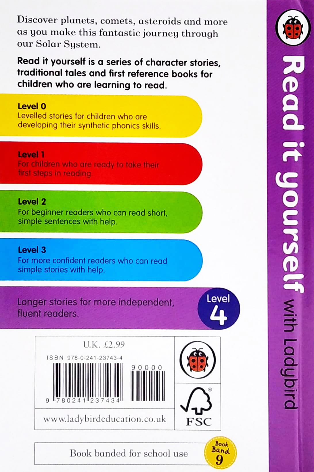 Our Solar System - Read It Yourself with Ladybird Level 4 (Hardcover) Learn all about our solar system in this fascinating non-fiction book, perfect for young readers ready to begin reading independently. Read it yourself with Ladybird is one of Ladybird's best-selling reading series. For over thirty-five years it has helped young children who are learning to read develop and improve their reading skills. Each Read it yourself book is very carefully written to include many key, high-frequency words that are vital for learning to read, as well as a limited number of story words that are introduced and practised throughout. Simple sentences and frequently repeated words help to build the confidence of beginner readers and the four different levels of books support children all the way from very first reading practice through to independent, fluent reading. Each book has been carefully checked by educational consultants and can be read independently at home or used in a guided reading session at school. Further content includes comprehension puzzles, helpful notes for parents, carers and teachers, and book band information for use in schools. Our Solar System is a Level 4 Read it yourself book, ideal for children who are ready to read longer stories with a wider vocabulary and are keen to start reading independently. For ages 3-5 Format Hardback | 48 pages Dimensions 124 x 181 x 7mm | 110g