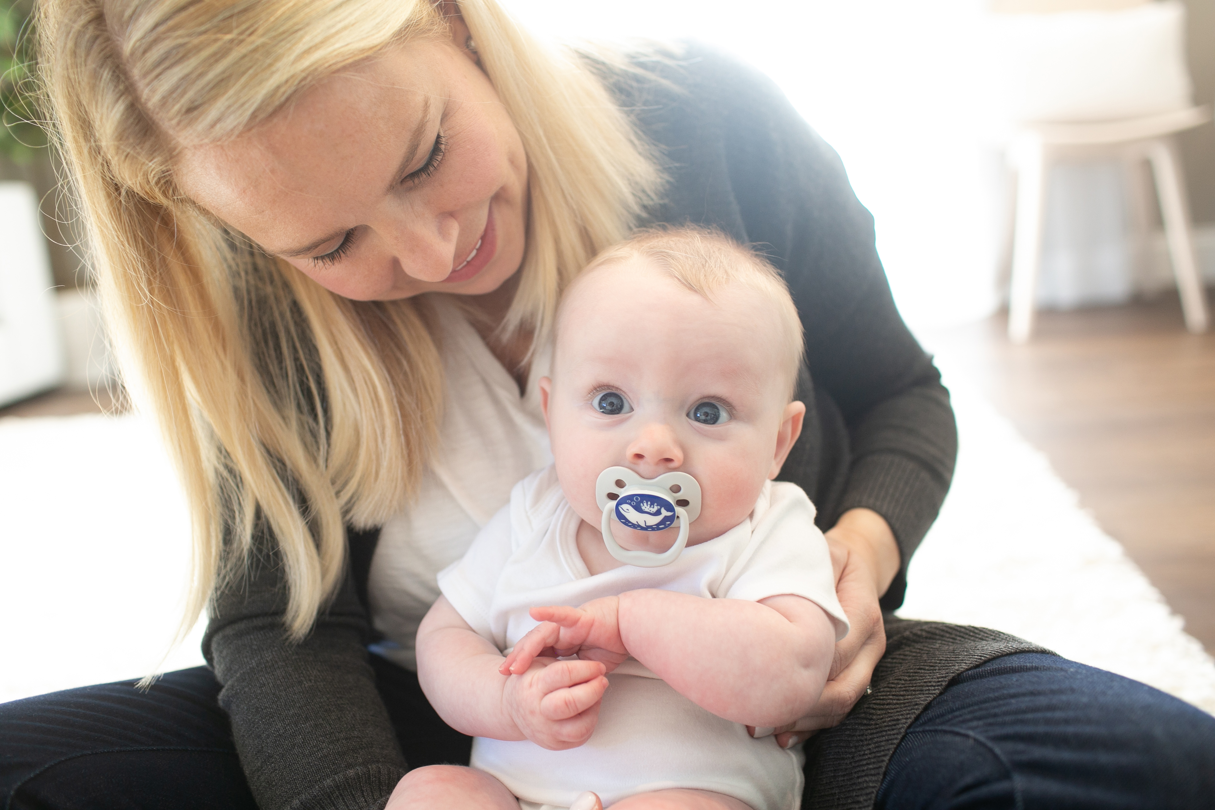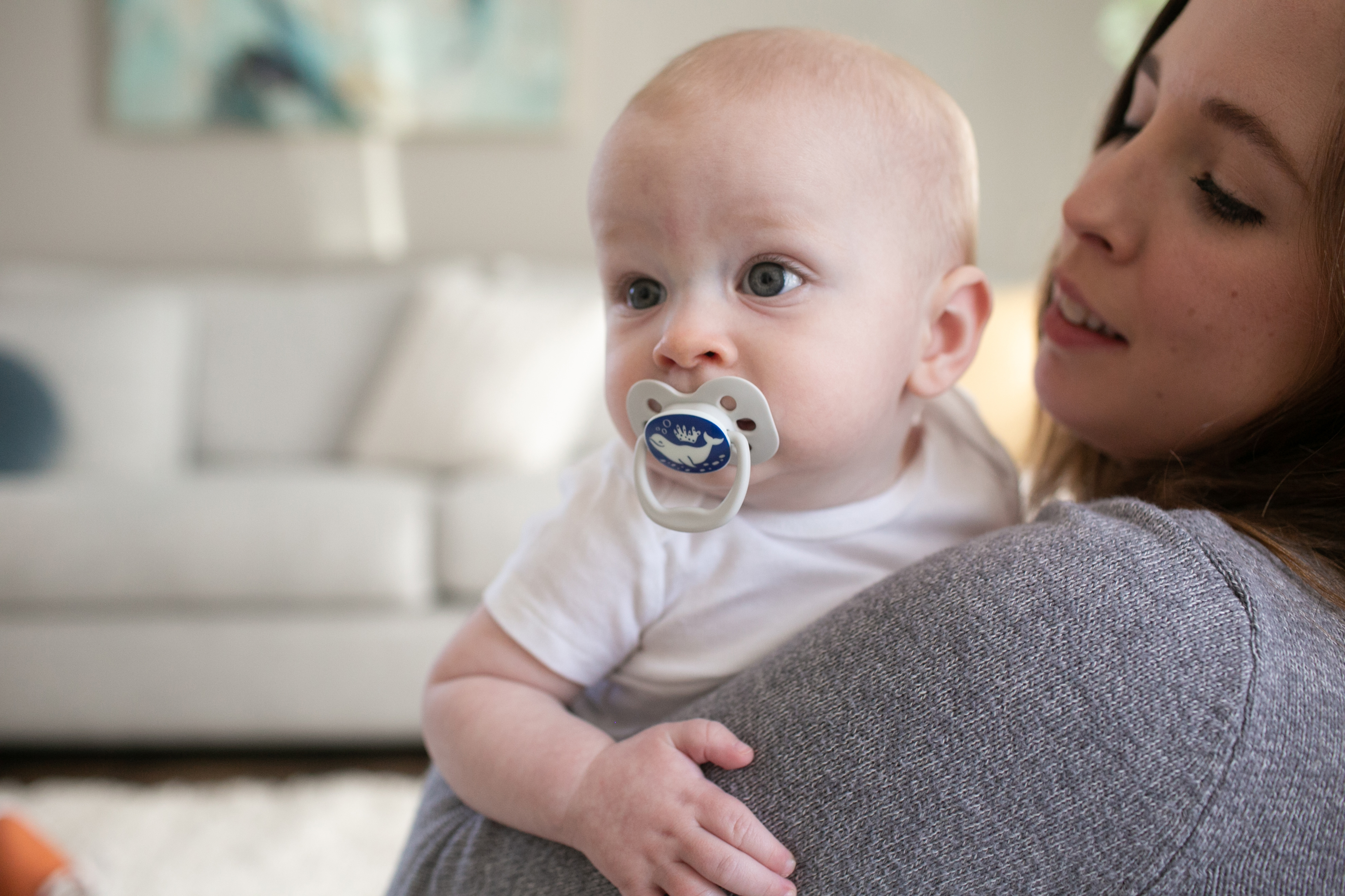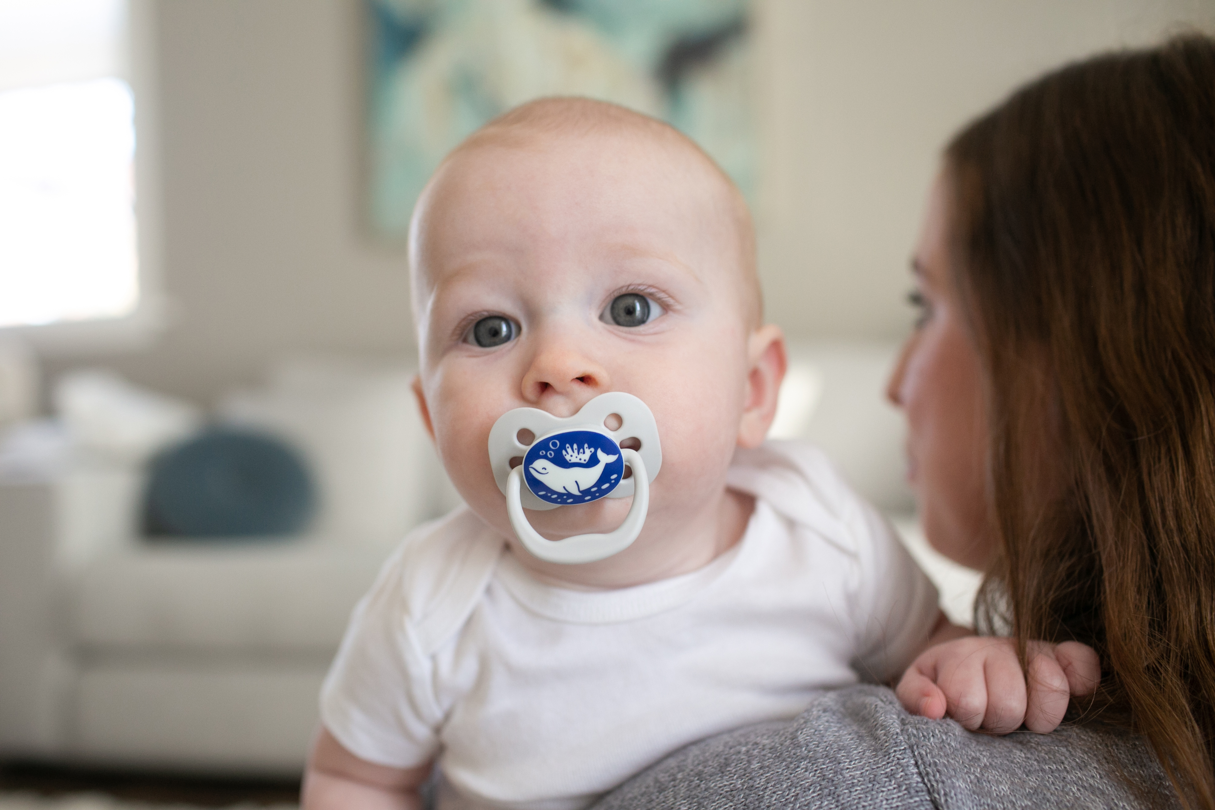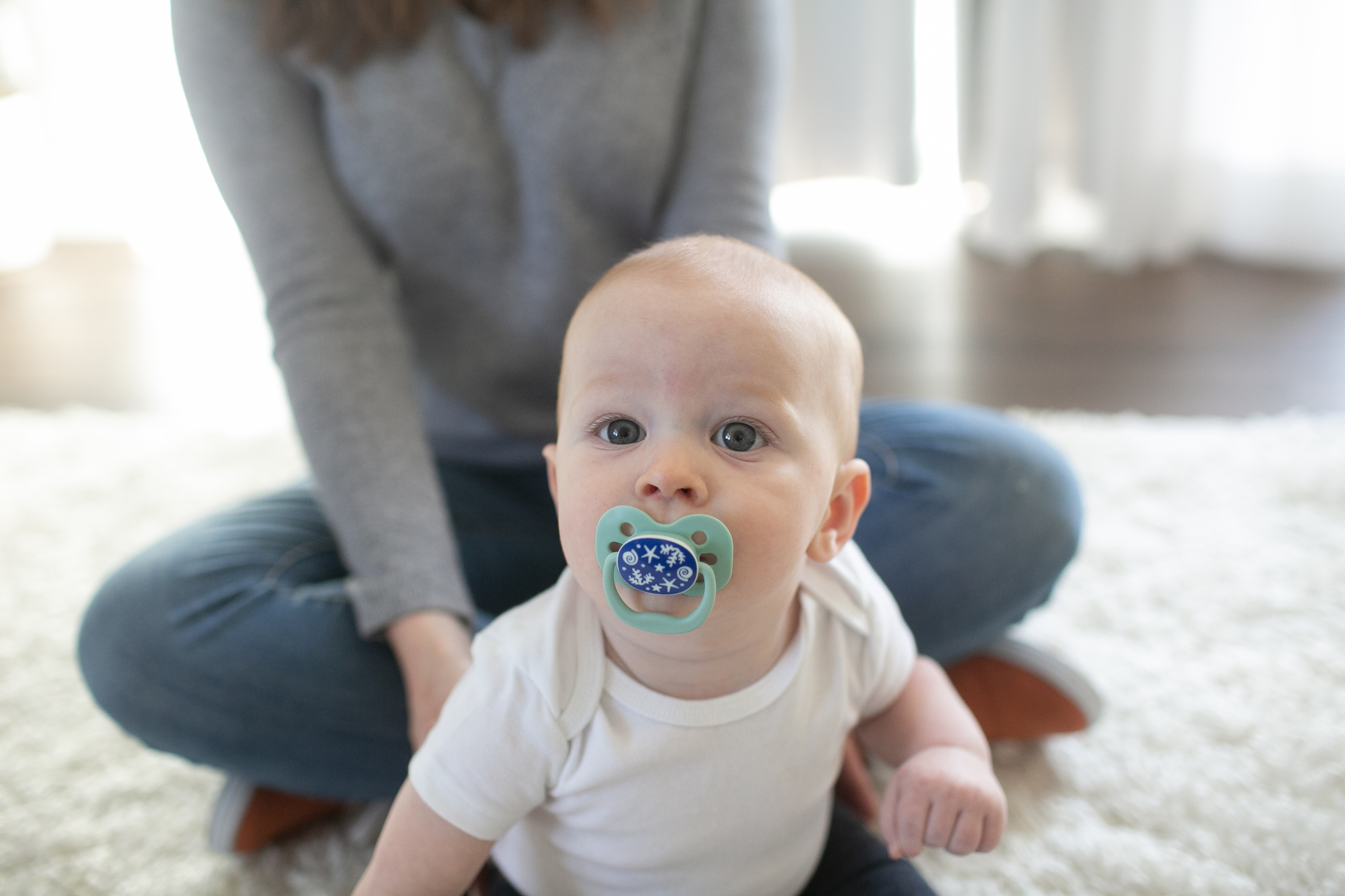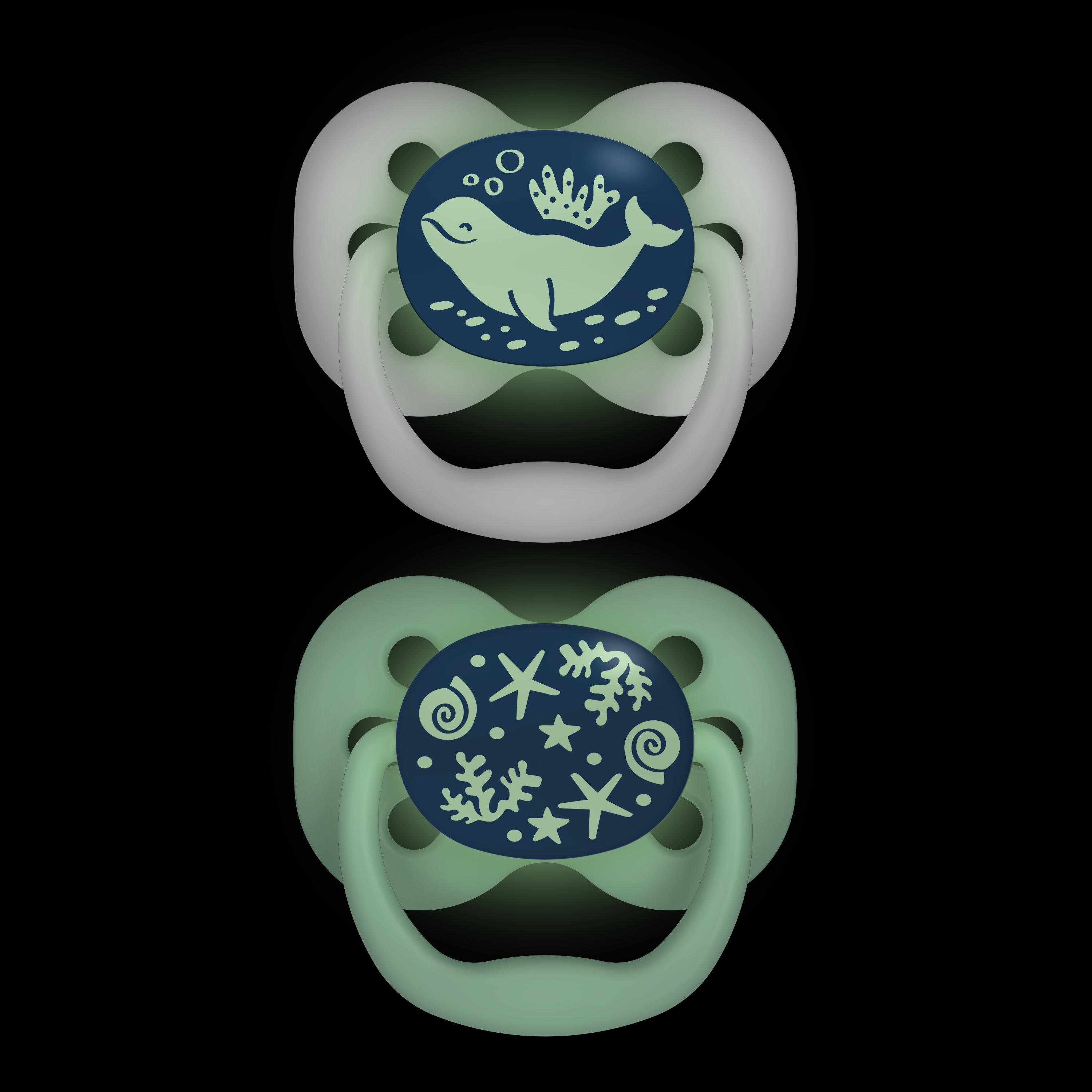 - Ty ngậm sẽ phát sáng trong bóng tối giúp mẹ dễ dàng tìm thấy khi cần