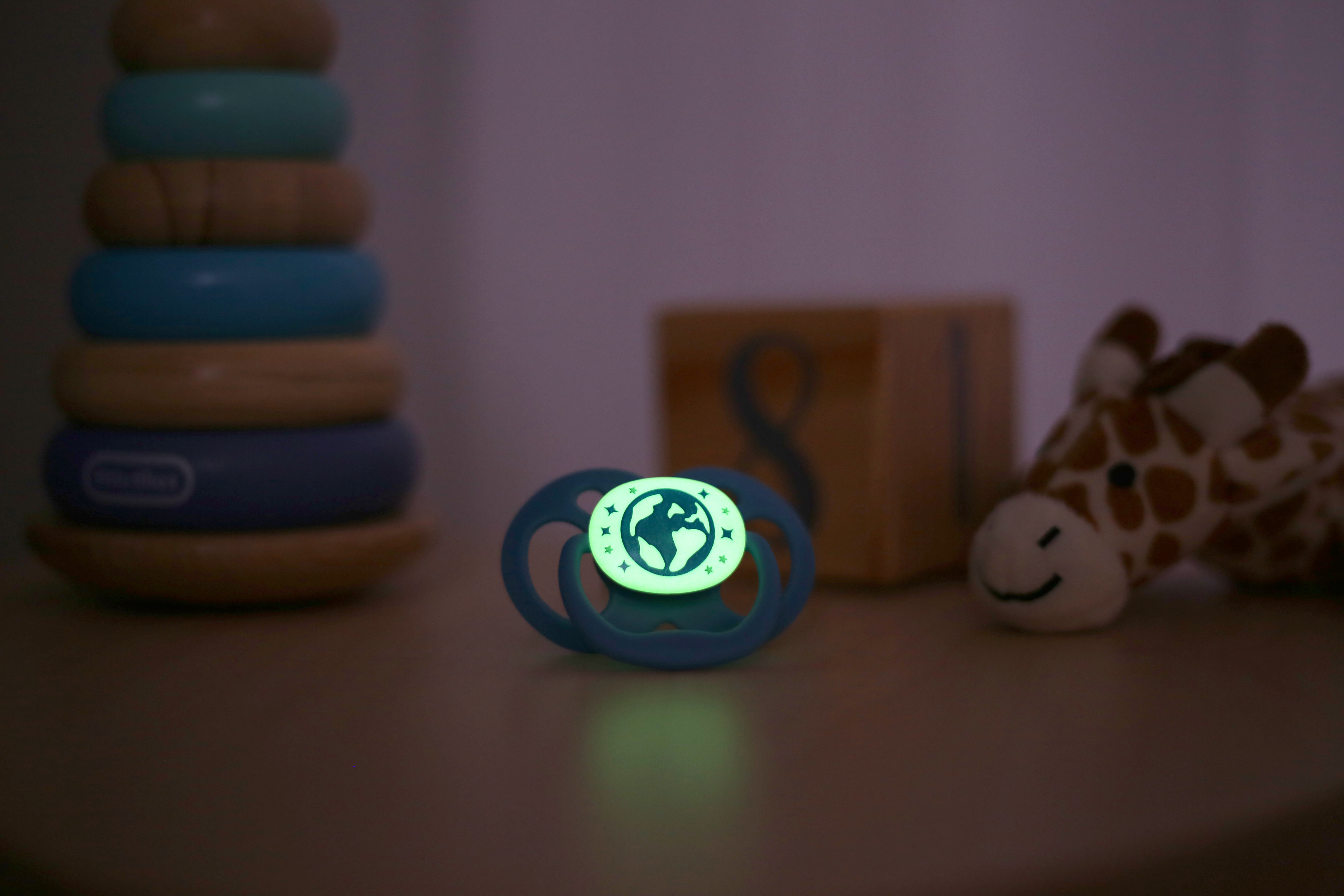 Dỗ bé bú sữa ngay từ khi sinh ra Vừa vặn, ngay cả vào ban đêm Có nút phát sáng trong bóng tối Thiết kế theo cấu trúc vòm miệng và không chứa BPA 1