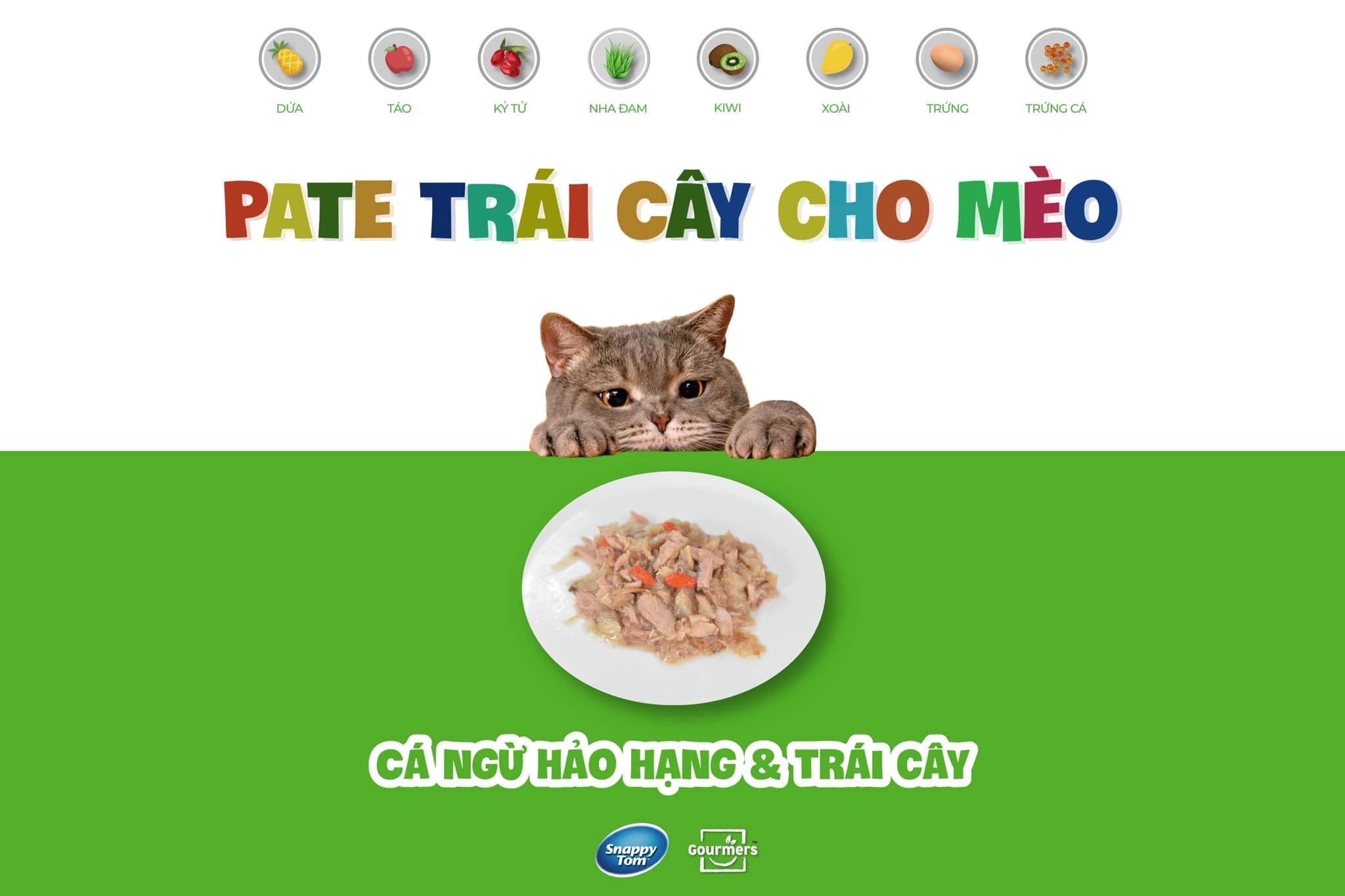 Bé mèo làm chuột bạch cho Pate snappy tom hoa quả