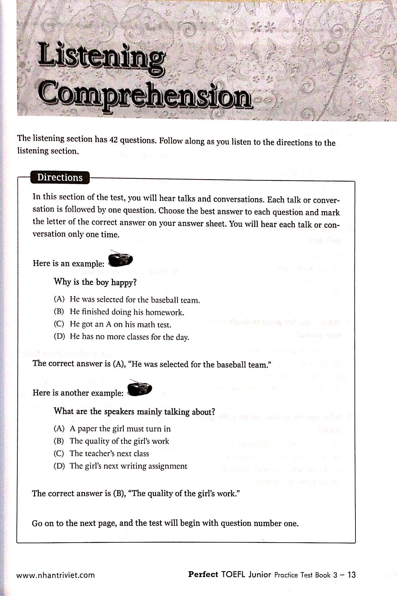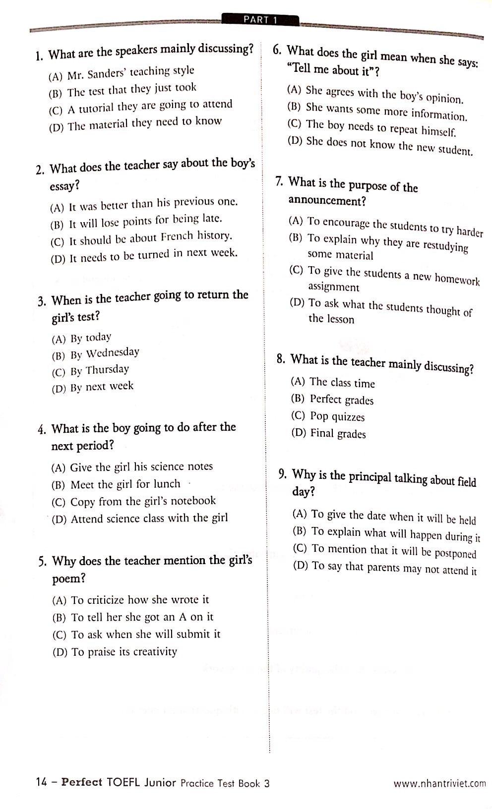 Perfect TOEFL Junior Practice Test Book 3 - Test 2 ( Audio, Answers, Script)