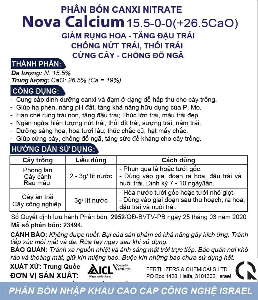 PHÂN BÓN ISRAEL CANXI HÒA TAN Nova Calcium 15.5-0-0(+26.5Cao)