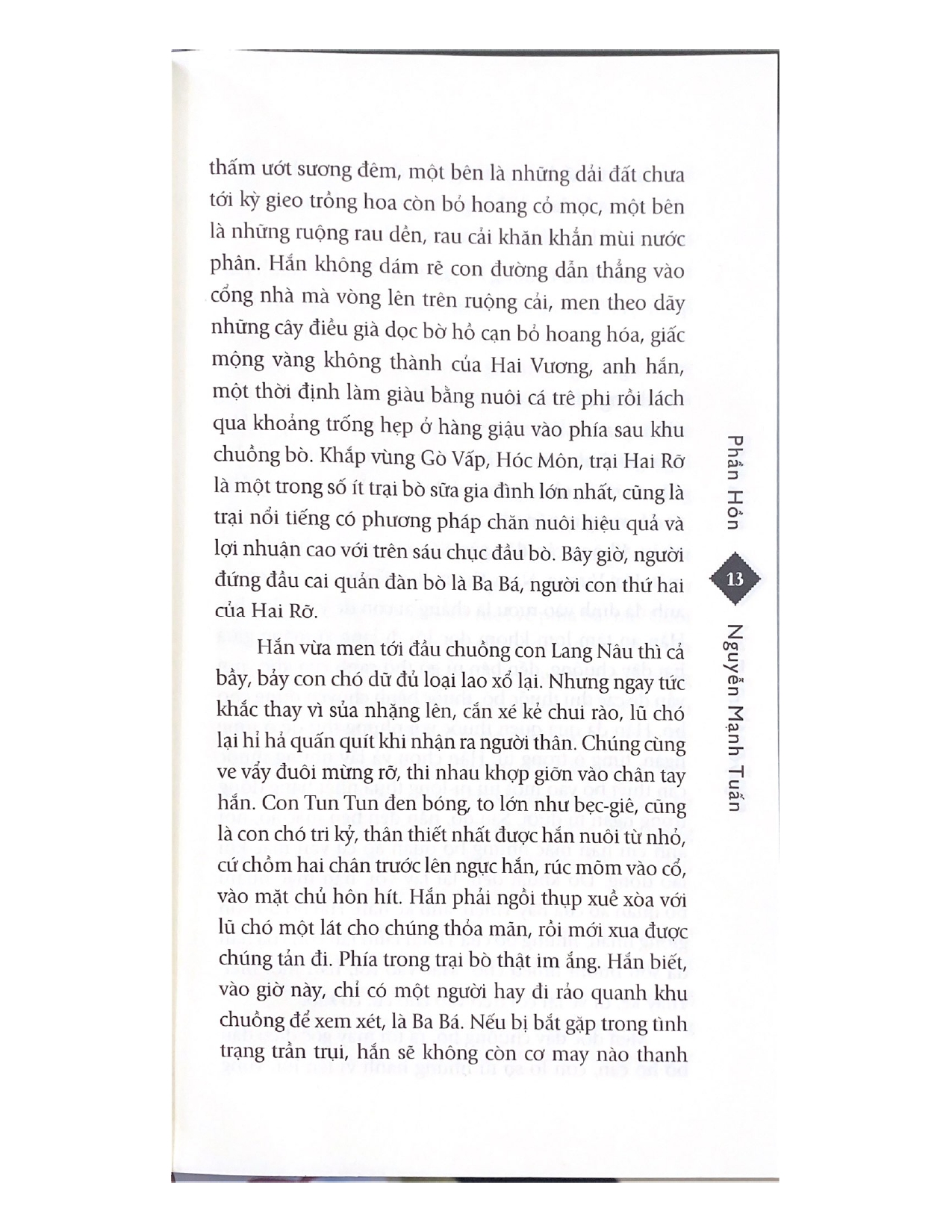 'Nàng ngấm sâu vào đời hắn bằng sự xuất hiện rất ngẫu nhiên, đã đánh thức trong hắn những nhận biết, những điều trước đây hắn tưởng không có trong phần hồn của người hắn, và chỉ từ mé phần hồn đó trỗi dậy cồn cào náo nức, hắn mới có nỗi khao khát làm một con người ra con người.