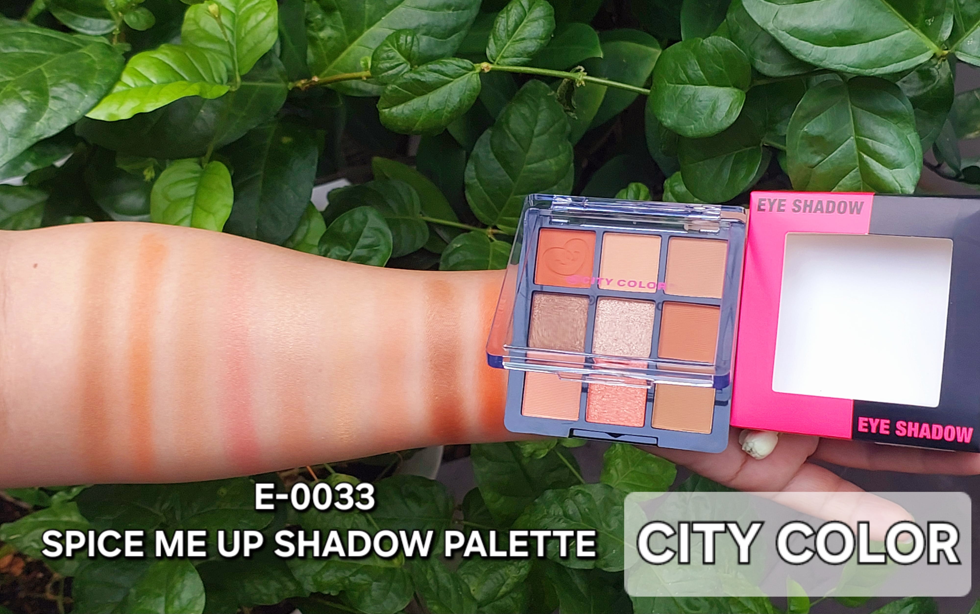 bảng phấn mắt 9 ô của City Color có tên là Spice Me Up Shadow Palette . Bảng phấn bao gồm 9 sắc thái màu mắt khác nhau, từ tông màu nâu nhẹ nhàng đến