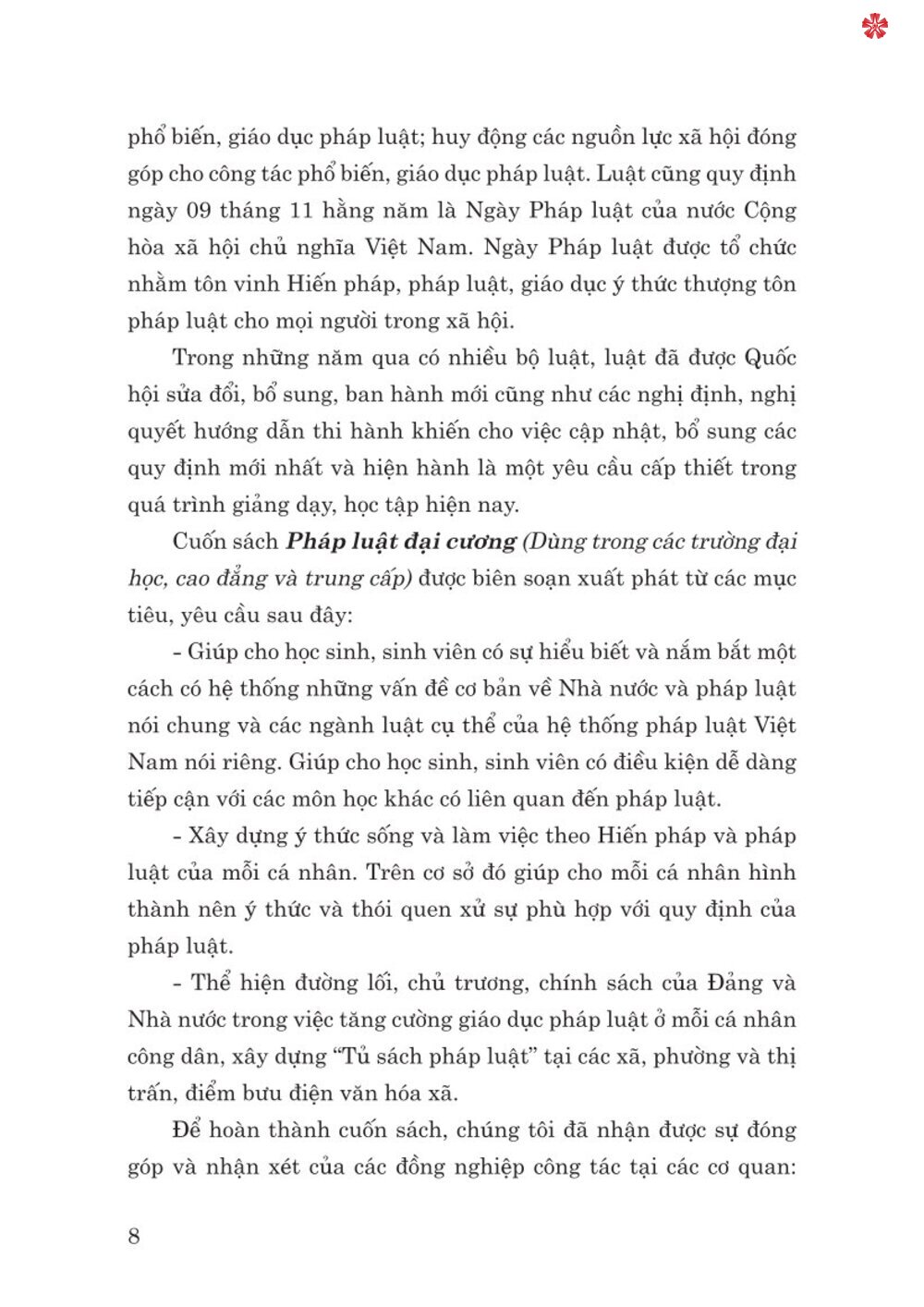 Nhằm góp phần phục vụ công tác đào tạo, bồi dưỡng những kiến thức cơ bản về nhà nước và pháp luật cho học sinh, sinh viên; cung cấp thêm tài liệu nghiên cứu, tham