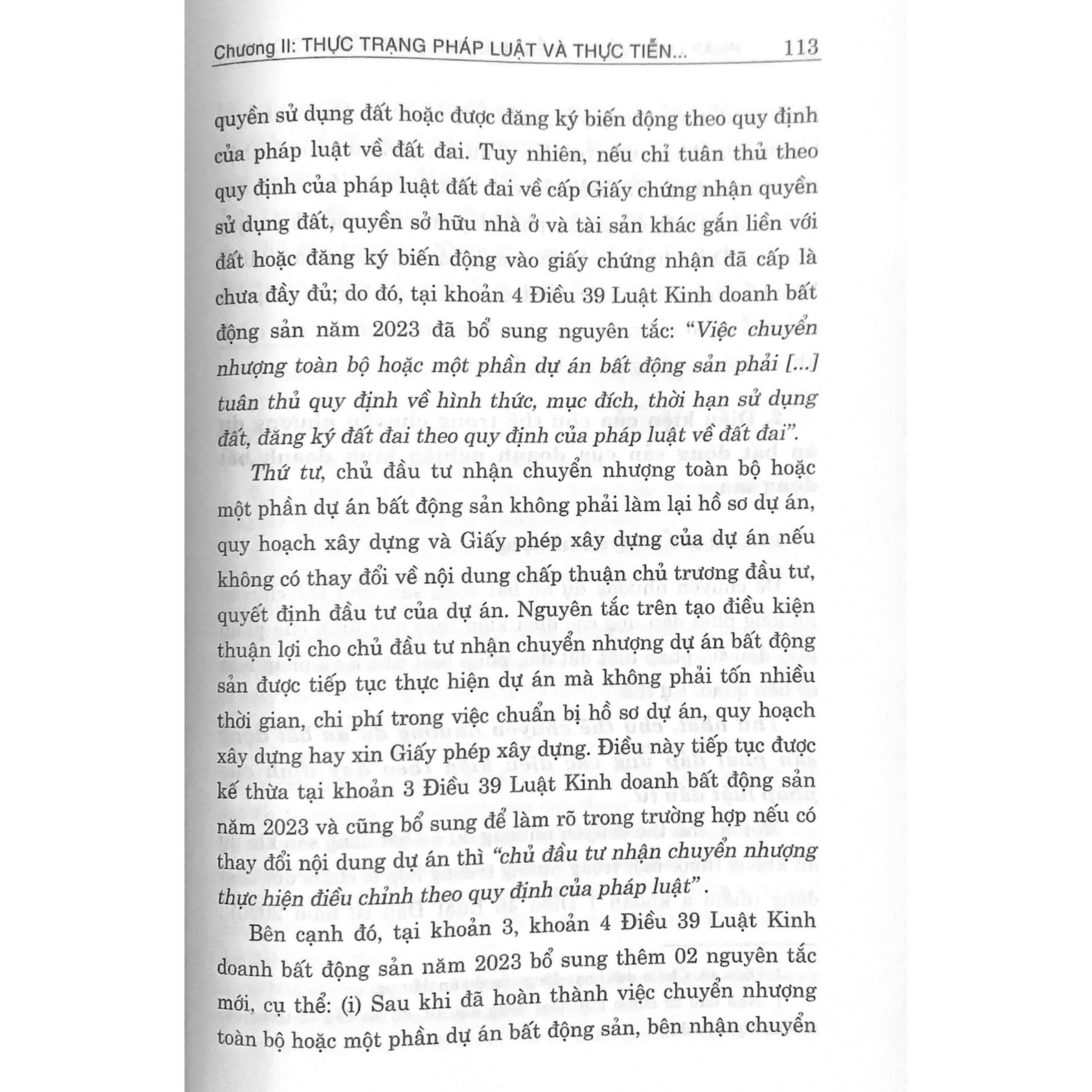 Trên cơ sở nghiên cứu và so sánh, phân tích, đánh giá thực trạng pháp luật, thực tiễn thực thi pháp luật, cuốn sách Pháp luật về chuyển nhượng, góp vốn các dự án bất động sản của doanh nghiệp kinh doanh bất động sản (Sách chuyên khảo) của Nhà xuất bản Chính trị quốc gia Sự thật, do PGS. TS. Nguyễn Thị Nga - Khoa Pháp luật kinh tế, Trường Đại học Luật Hà Nội làm chủ biên, tập trung làm rõ những vấn đề lý luận về chuyển nhượng, góp vốn các dự án kinh doanh bất động sản dưới góc nhìn đa chiều; phân tích, đánh giá thực tiễn thực thi pháp luật về các hoạt động này, qua đó đề xuất những giải pháp hoàn thiện pháp luật, nâng cao hiệu quả áp dụng pháp luật về hoạt động chuyển nhượng, góp vốn dự án bất động sản, hướng tới sự phát triển ổn định và bền vững của thị trường này tại Việt Nam.
