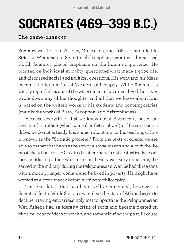 From Aristotle and Heidegger to free will and metaphysics, Philosophy 101 is packed with hundreds of entertaining philosophical tidbits, illustrations, and thought puzzles that you won't be able to find anywhere else.