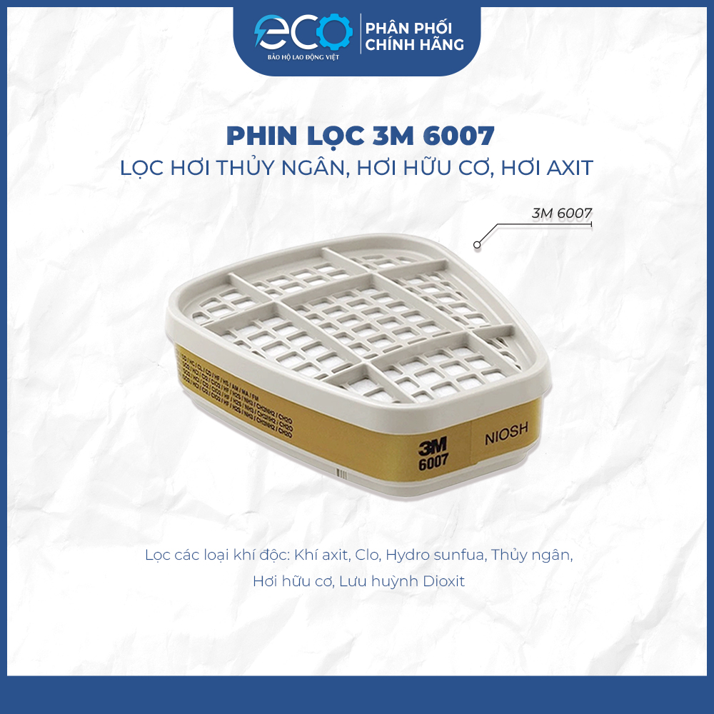 - Chuẩn lọc: NIOSH – Multi-Gas/Vapor Phin lọc 3M 6007 – Formaldehyde & hơi hữu cơ