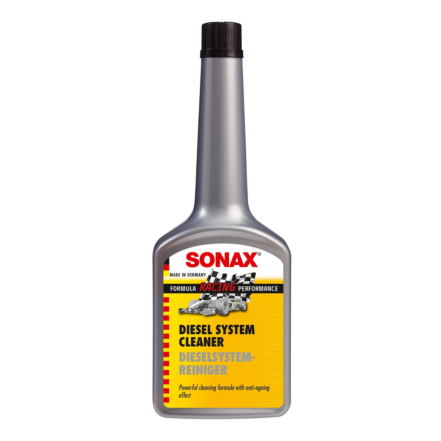Phụ gia vệ sinh hệ thống dầu diesel toàn diện Sonax 518100 250ml có công thức mạnh mẽ làm sạch các kim phun và toàn bộ buồng đốt động cơ dầu, loại bỏ các bụi bẩn, tiết kiệm nhiên liệu, giảm lượng khí thải và tiết kiệm nhiên liệu.