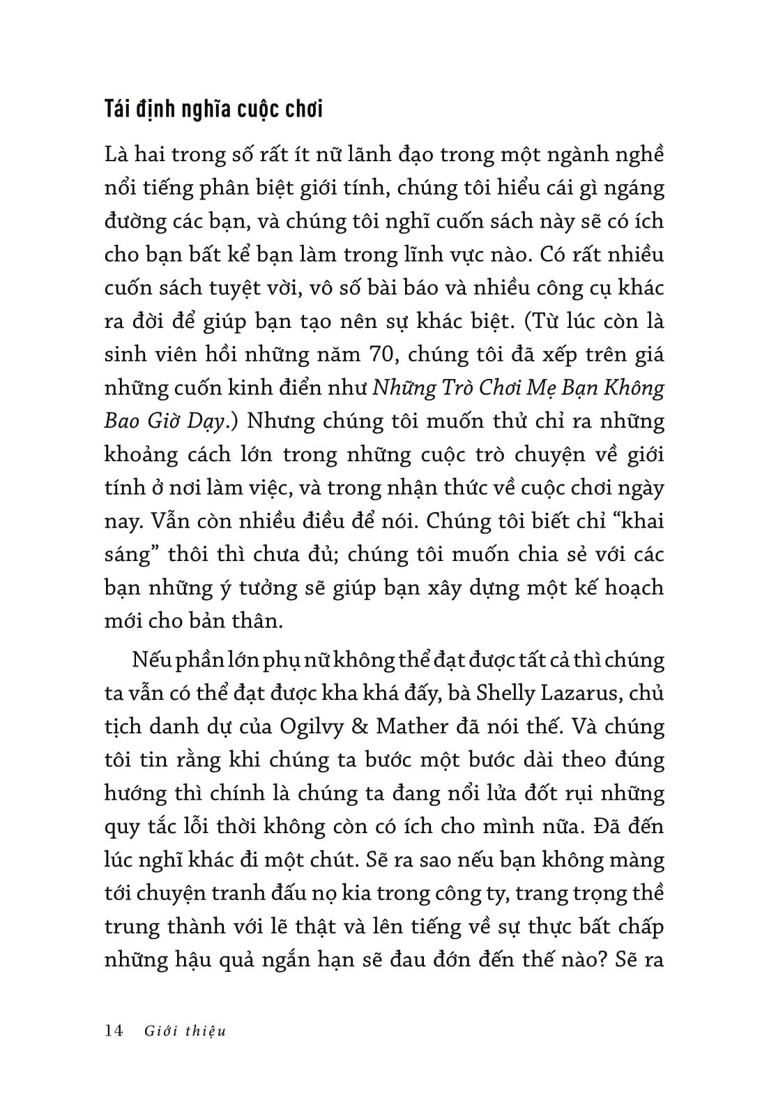 Tất nhiên chuyện đó không dễ dàng. Với vai trò là hai phụ nữ thành công trong tập đoàn quốc tế lớn, các tác giả chia sẻ những trải nghiệm có thực trong cuộc đời đi làm của mình, và đúc rút thành những lời khuyên cho người đi sau. Họ nhìn ra những "quy tắc" ngầm trong thế giới vẫn chưa hoàn toàn bình đẳng giới, và chỉ dẫn người phụ nữ hãy biết lên tiếng bày tỏ ý kiến của mình, thương lượng quyền lợi của mình một cách hiệu quả, hãy làm việc đúng khả năng, và đừng vì sợ hãi mà chối bỏ thiên chức lẫn niềm vui làm mẹ.