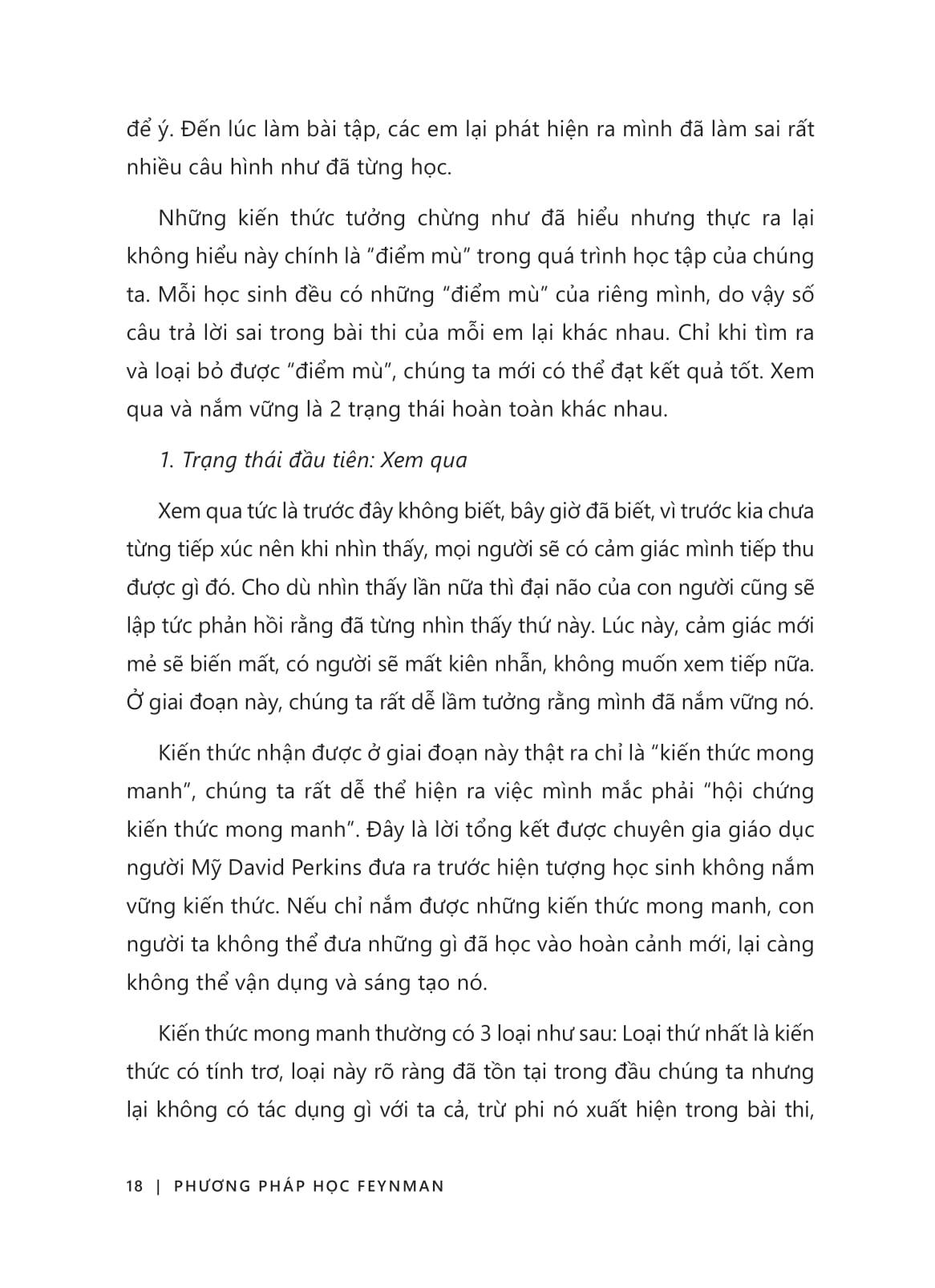 Phương Pháp Học Feynman - Học Tài Không Thi Phận Với Kỹ Năng Ghi Nhớ Và Ứng Dụng Kiến Thức Hiệu Quả Cao Nếu chỉ cần “ghi nhớ khái niệm + áp dụng công thức” thì bất cứ ai cũng có thể thành học sinh giỏi. Nhưng với quỹ thời gian có hạn, bạn có tự tin bản thân sẽ học nhanh, nhớ lâu và hệ thống được khối lượng kiến thức đồ sộ? Để chiếm ưu thế trong cuộc cạnh tranh điểm số khốc liệt, chăm chỉ thôi là chưa đủ. Tất cả những gì bạn cần là một CHIẾN LƯỢC HỌC thông minh, toàn diện.